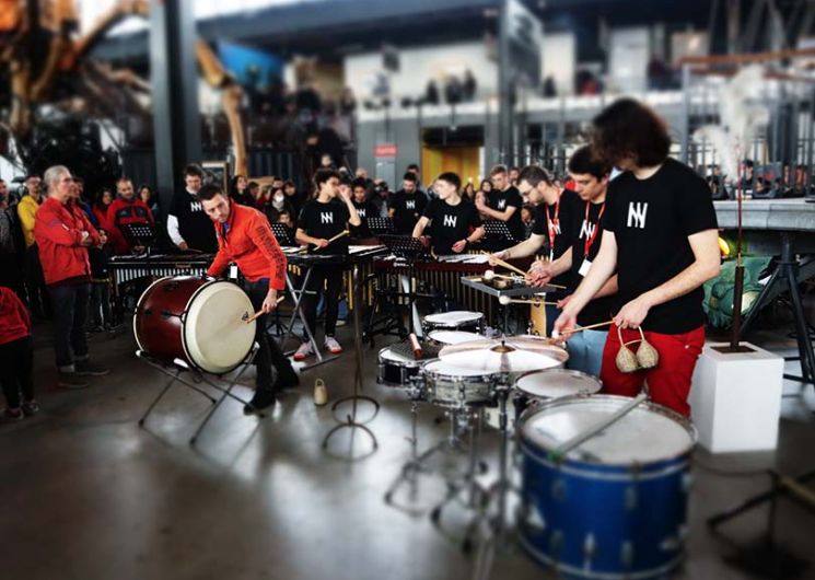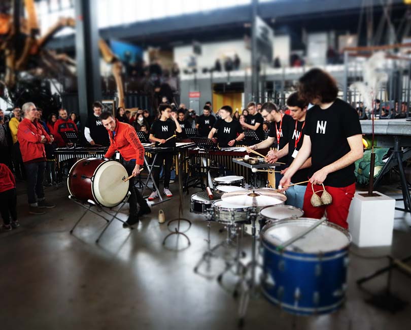 Les classes de percussions de l’école de musique de l’Association Artistique des Cheminots de Toulouse (AACT), du Conservatoire de Toulouse, du Conservatoire de Pau, de celui de Limoux, de l’ISDAT, mais aussi de Play Music investissent la Halle de La Machine.