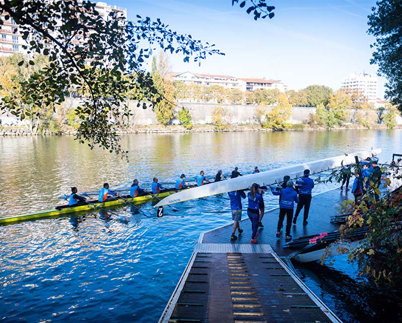Ces impressionnants bateaux de 19 mètres de long, chacun composé de huit rameurs et d’un barreur, s’affrontent sur la Garonne, au niveau du pont de La Croix-de-Pierre.