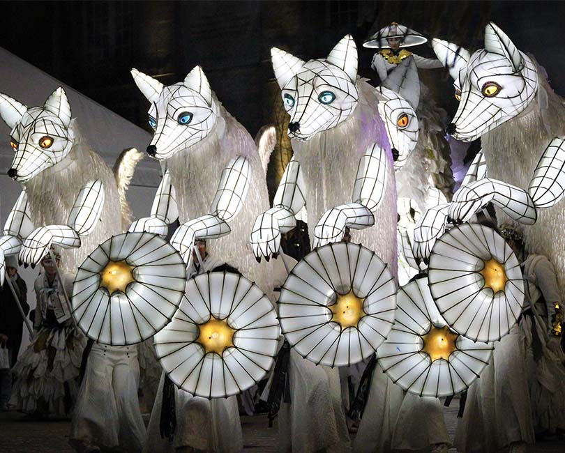 De 18h45 à 20h15, le spectacle son et lumière « Légendaires » de la compagnie Remue Ménage s’élance depuis les Ramblas jusqu’au Capitole, en passant par les allées Jean-Jaurès, les allées Franklin-Roosevelt, la place Wilson et les rues du Poids de l’Huile et Lapeyrouse. Au cœur du défilé avancent des renards lumineux, fiers et mystérieux, accompagnés de danseurs et d’acrobates diffusant fumée et lumières incandescentes.