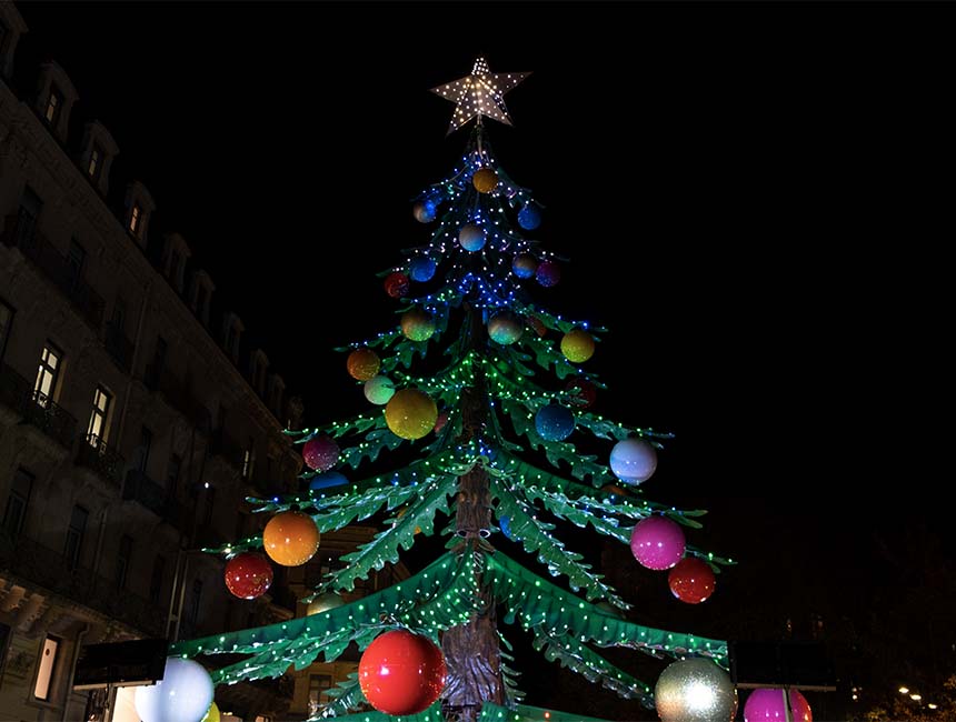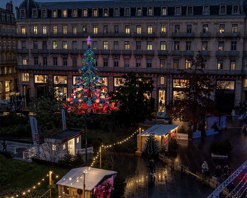Un manège original très original puisque vous pouvez grimper dans une des boules de l’arbre pour faire un tour et admirer en hauteur la féérie de Noël.