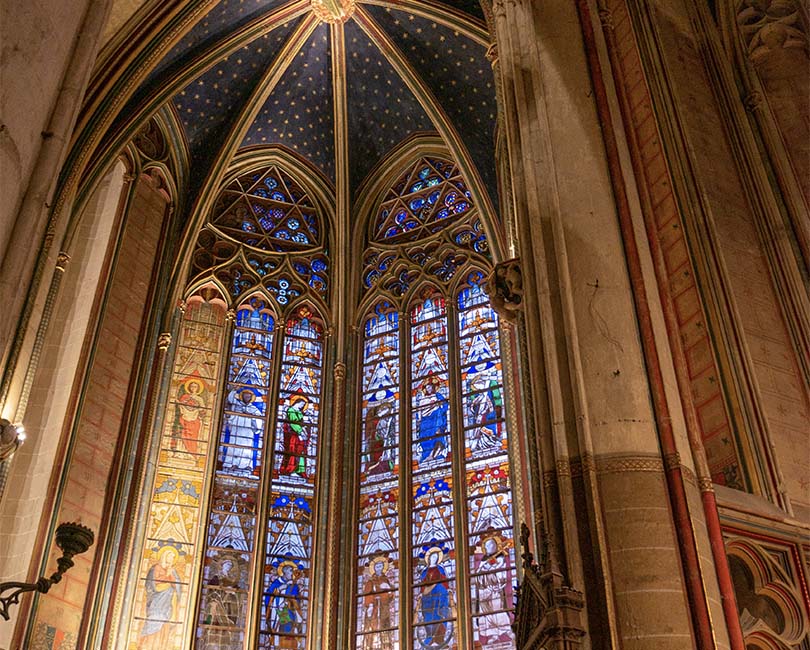 À partir des verrières de la cathédrale Saint-Étienne, apprenez comment regarder un vitrail en évoquant l’histoire des techniques et l’évolution de l’art du vitrail du XVIIIe au XXe siècle.