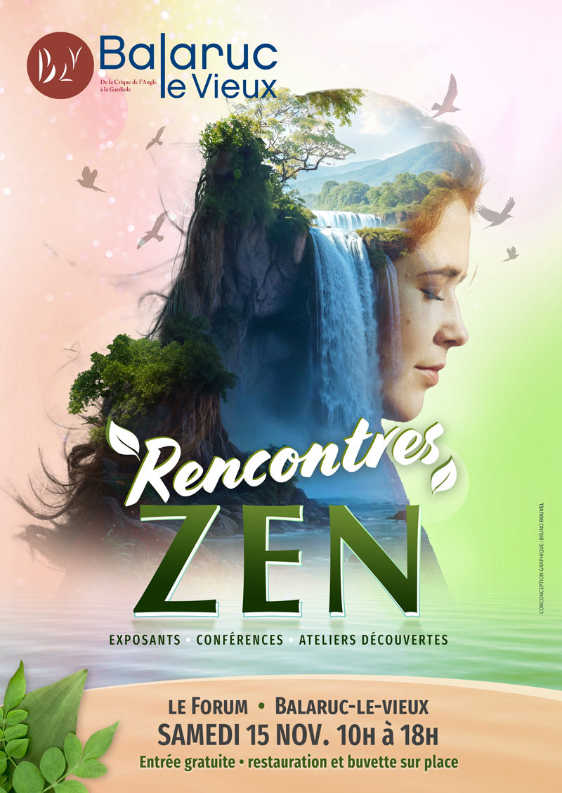 Pour la 4eme année, la ville de Balaruc-le-Vieux vous invite le samedi 15 novembre de 10h à 18h à vivre et à adopter la Zen’attitude.Si vous voulez voir fleurir la vie, trouver les moyens de vous apaiser et développer la force qui est en vous, c’est le lieu où il faut être.Les « Rencontres ZEN », sont un espace de partages et de découvertes.Le Salon : Venez rencontrer des thérapeutes, découvrir des techniques de mieux-être ou vous relaxer tout simplement.12 conférences : Découvrir, comprendre et poser des questions pour s’initier aux techniques pour améliorer sa vie. Chaque conférence est gratuite.Les « ateliers découvertes » : Venir 15 minutes avant chaque atelier.12h: Lecture d’histoires et de contes initiatiques17h30: Tirage au sort de la TOMBOLA GRATUITE18h: Voyage sonore et vibratoire par NATURAMASTEPlongez dans les profondeurs de votre monde intérieur lors d’une expérience inédite avec un voyage sonore et vibratoire aux bols et aux gongs.Laissez-vous emporter par la magie des sons…Offrez à votre corps et à votre esprit un voyage hors du temps grâce aux sons et aux vibrations …Des vibrations douces, profondes et harmonisantes qui pénètrent chaque cellule pour libérer les tensions, apaiser le mental et rééquilibrer l’énergie.Fermez les yeux, respirez, plongez dans un voyage intérieur où chaque son résonne avec votre essence profonde …Venez vivre un moment hors du temps !A découvrir et tester sans attendre ! C’est une expérience inoubliable !