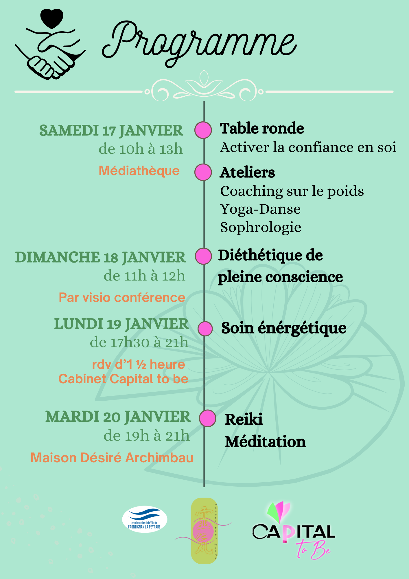 Prenez soin de vous et de votre entourage !Découvrez des ateliers : pour activer la confiance en soi, coaching sur le poids, Yoga Danse, sophrologie, soins énergétiques, diététique, Reiki, méditation…Toutes ces séances sont en dons libres : à vous de choisir, l’accès est libre sur inscriptionhttps://www.helloasso.com/associations/association-reiki-du-bassin-de-thau/evenements/soins-bien-etre-pour-tous-en-janvier-2026