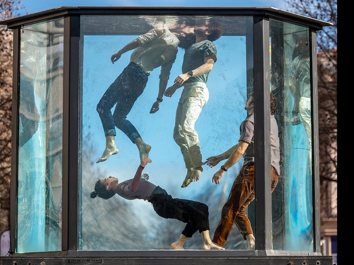 Dans un aquarium géant, quatre artistes interprètent une chorégraphie à la fois pure et fulgurante, inspirée du cycle de l’eau. Un mélange de cirque et de danse d’un genre nouveau où les corps, en apesanteur, se croisent au ralenti, forment une ronde tout en synchronisant leur respiration.