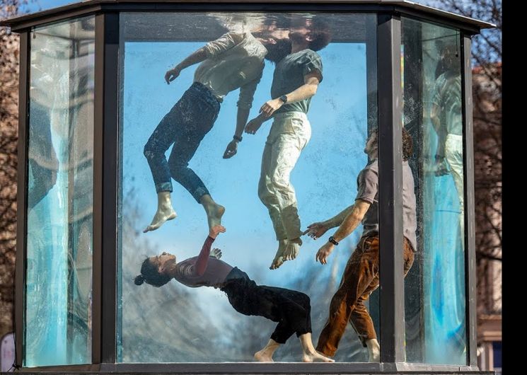 Dans un aquarium géant, quatre artistes interprètent une chorégraphie à la fois pure et fulgurante, inspirée du cycle de l’eau. Un mélange de cirque et de danse d’un genre nouveau où les corps, en apesanteur, se croisent au ralenti, forment une ronde tout en synchronisant leur respiration.