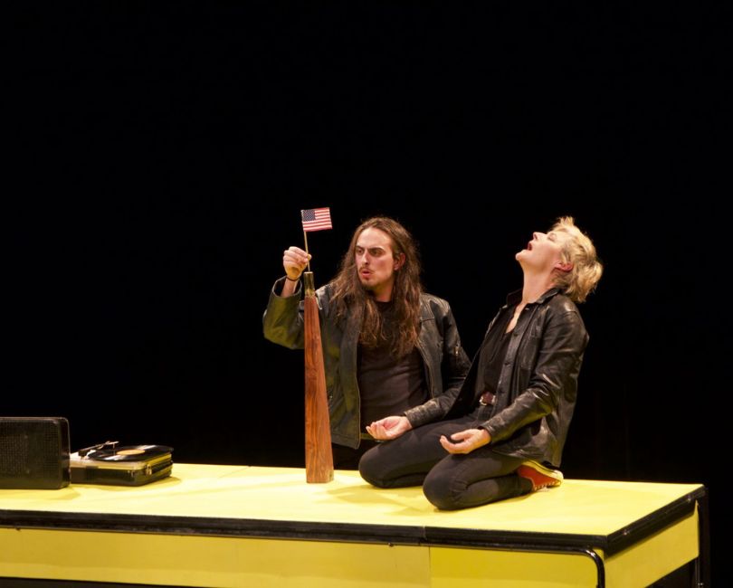 Autour d’une table du temps, entre musiques et mots, radio cassettes et vinyles, Eliot Saour et Karine Monneau sortent aussi de leurs chapeaux : des tables en Formica, des repas de famille, des toilettes dans la cour, des révolutions, des chienlits, des séances de gym tonic, des téléphones portables, des buildings qui s’effondrent et des converses pour quadra.