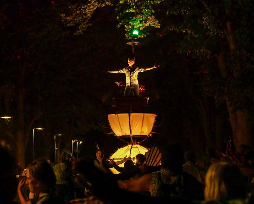 À 18h, direction la rue de Metz pour la deuxième parade « Lunarium », un spectacle aérien et acrobatique où une lune scintillante prend vie sous vos yeux.