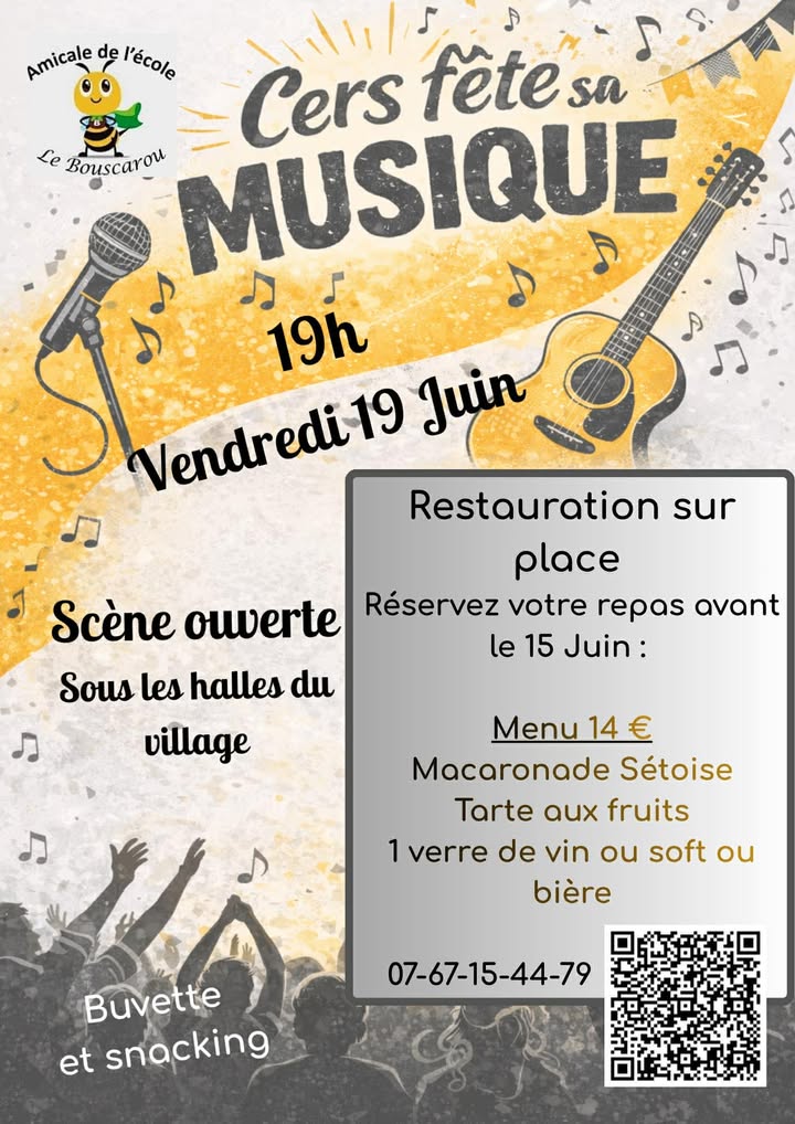 À l’occasion de la prochaine fête du village, une scène ouverte aura lieu le vendredi 19 juin, sous les Halles de Cers. Musiciens et artistes, quels que soient leur âge et leur niveau, sont invités à venir se produire et partager leur talent.