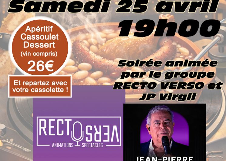 Soirée organisée par les Bénévoles du Comité des Fêtes de Balaruc-les-Bains. Il s’agit d’un repas dont le plat principal sera un cassoulet, suivi d’une animation musicale par le Groupe Recto-Verso et JP VIRGIL. Cette soirée se déroulera au Complexe Sportif Pech Meja (Boulodrome couvert). Réservation obligatoire et repas payant.