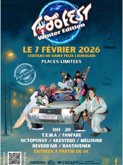Plongez dans l’hiver version groove et convivialité avec la Winter Edition du TodoFest, le rendez‑vous musical et festif de Saint‑Félix‑Lauragais ! Au cœur du château, cette édition hivernale transforme le patrimoine local en scène vibrant au son de concerts live, spectacles et fanfares, avec une énergie qui fait swinguer toute la vallée du Lauragais !