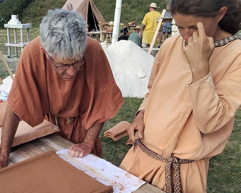 Avec le collège des artisans des Fabri Tignvarii, venez découvrir les techniques utilisées par les ouvriers romains pour construire et décorer. Abordez la technicité des nombreux mortiers de chaux et de la construction en briques de terre cuite que l’on retrouve dans la construction romaine. Trois ateliers vous permettent d’admirer la création des différentes terres cuites ainsi que des démonstrations d’extinction de chaux (à 11h, 14h30 et 16h) et décor peint d’une colonne.