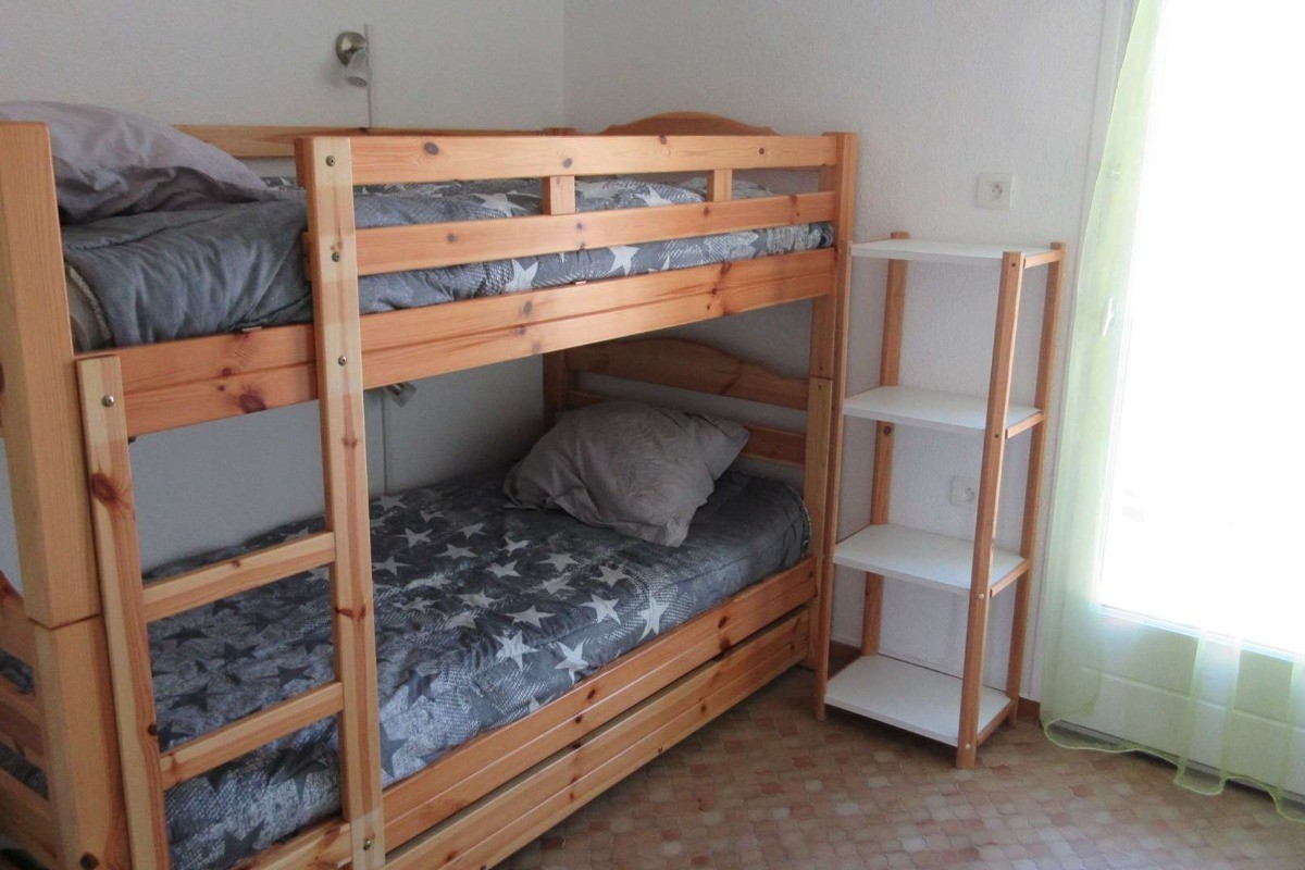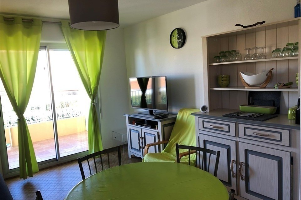 Cap d’Agde, résidence sécurisée avec piscine, pataugeoire, jacuzzi, sauna, salle de sports, salle de squash, table de ping-pong, barbecue commun dans le jardins de la résidence. Idéal famille! Appartement 3 pièces pour 6 personnes au 1er étage, d’env. 40 m² avec une belle terrasse de 8 m² env. exposée Sud avec vue mer, parking privé. Appartement composé d’un séjour avec 1 canapé clic-clac (couchage pour 2 pers), TV écran plat, espace repas avec table et chaises; coin cuisine équipée d’ une palque vitrocéramique, un réfrigérateur avec congélateur, un combiné micro-onde/ four; vaisselle pour 6 pers Une chambre avec un lit en 140 pour 2 pers. et un placard ; une chambre avec deux lits superposés, une fenêtre et un placard ; salle d’eau refaite avec lavabo, sèche-serviette, WC séparés. Terrasse exposé Sud avec salon de jardin, vue mer 2 ème ligne. Appartement avec WIFI inclus. Laverie dans la résidence. Référence Agence AZURA : STM246