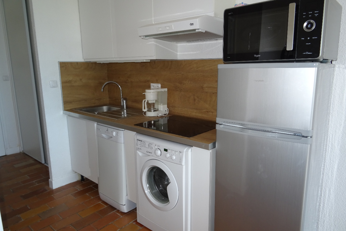 Studio avec une superficie approximative de 30 m². Il se compose d’une cabine et d’une loggia situé au rez-de-chaussée pouvant accueillir jusqu’à 4 personnes. Il dispose d’une salle d’eau avec douche. Les couchages comprennent un canapé convertible de qualité dans le séjour et deux lits superposés dans la cabine. L’appartement se trouve à environ 50 mètres de la plage, en front de mer. Les équipements disponibles sont une télévision, un micro-ondes, un lave-linge, un lave-vaisselle, un réfrigérateur, un congélateur, des plaques à induction et un four. Le parking attribué est le numéro 31, les animaux ne sont pas admis. Référence Agence : 95