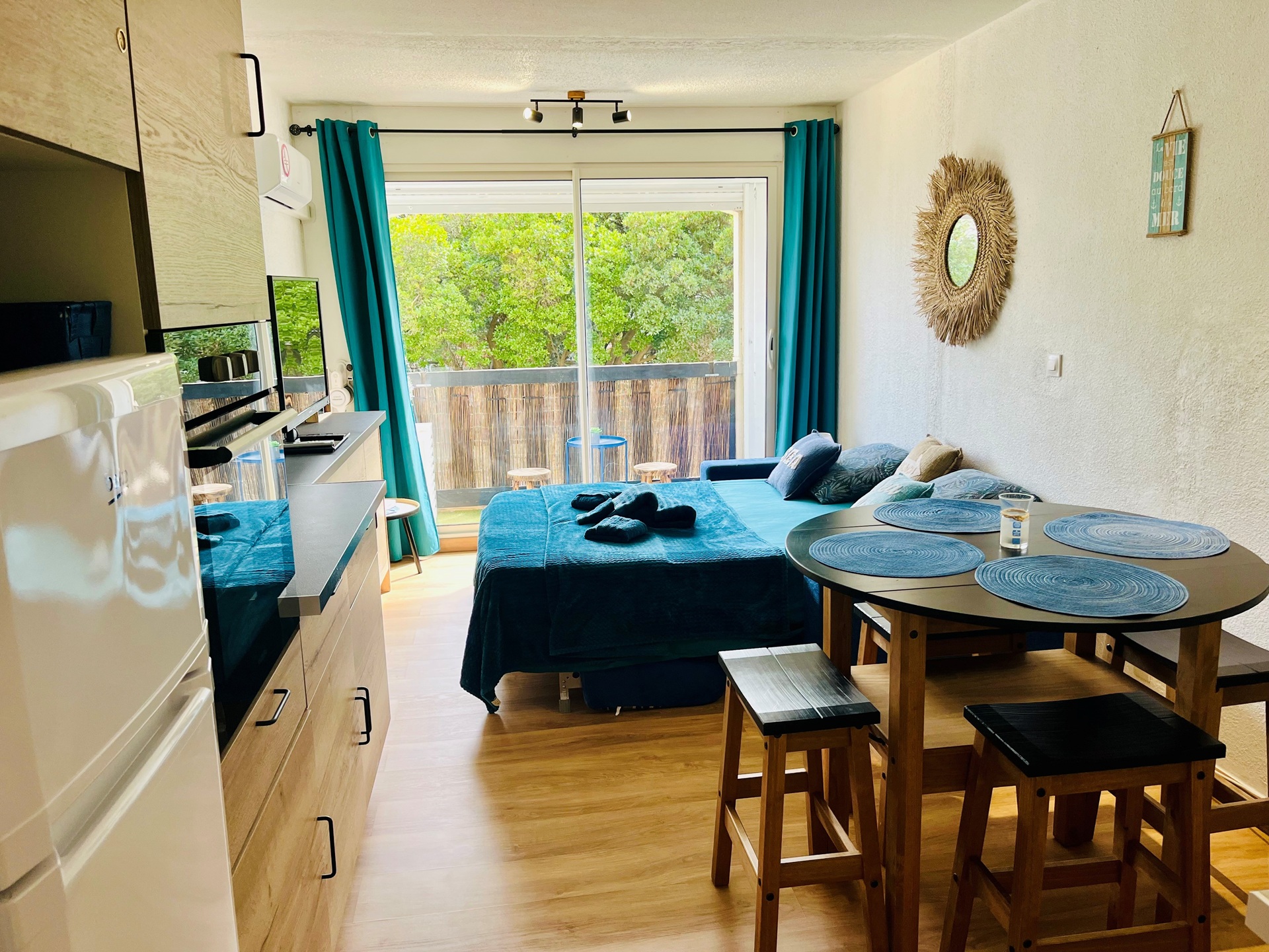 Charmant studio cabine exposé plein Sud, situé dans une résidence calme au Cap d’Agde.