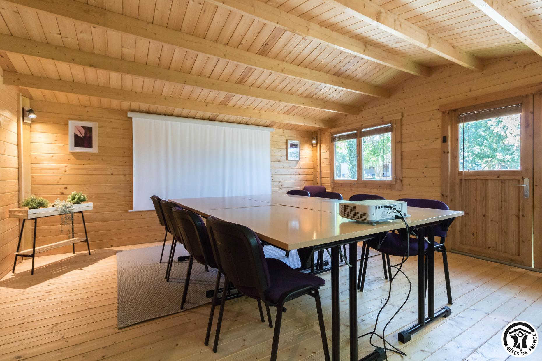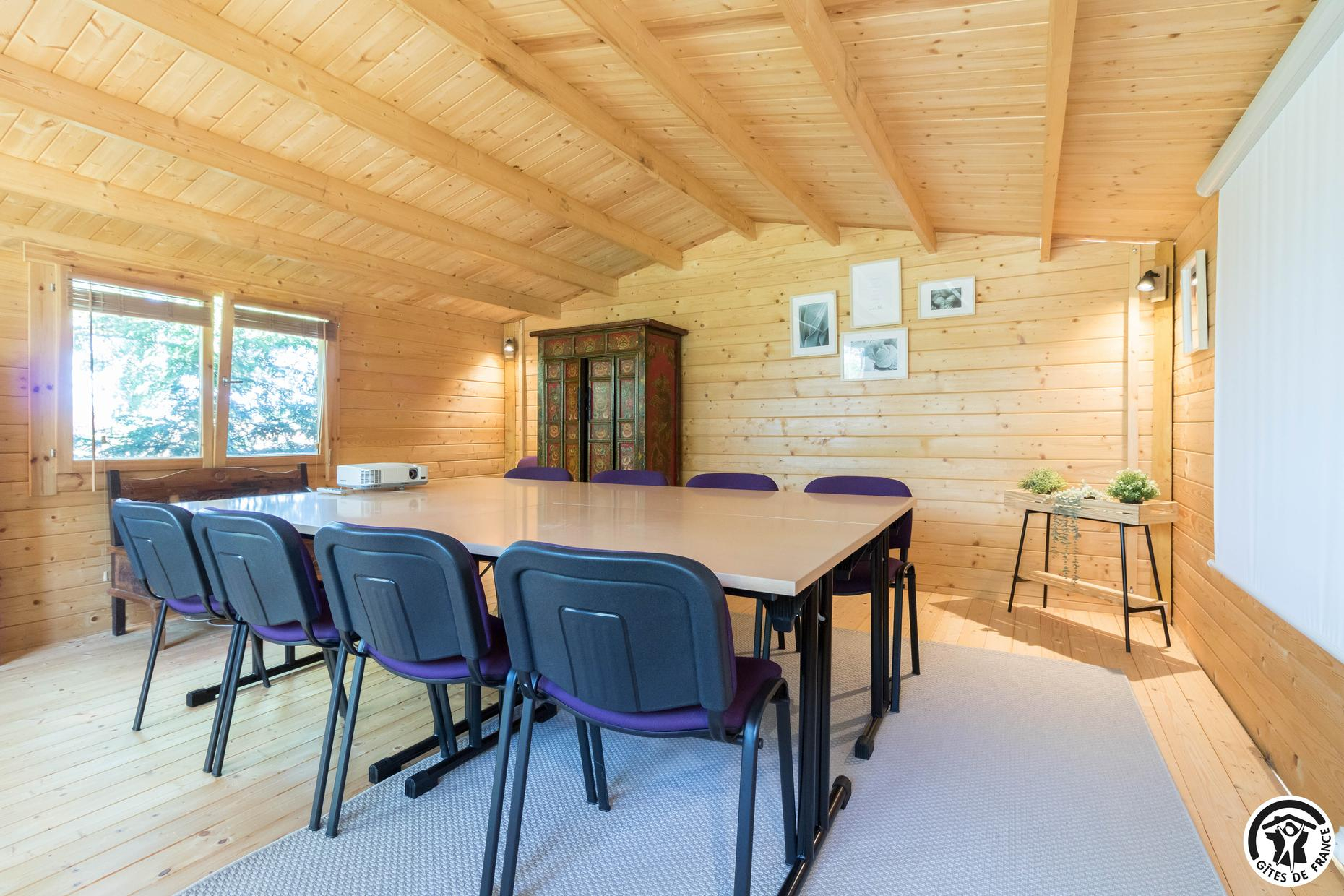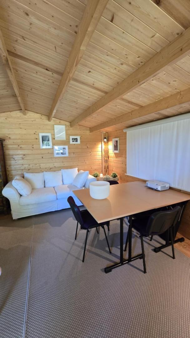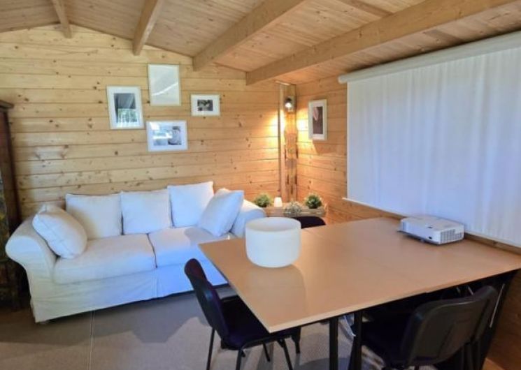 A des fins formations, d’évènements professionnels, team building, cours yoga, formations diverses, nous avons un chalet en bois très cosy.
