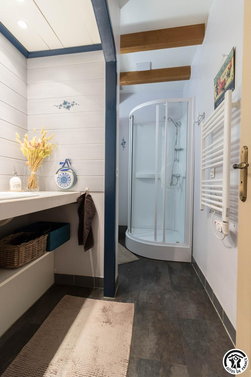 Le Gîte L’Eau d’O est mitoyen au Gîte Les Fées, lui-même mitoyen à la maison des propriétaires. Ils ont tous une entrée indépendante.