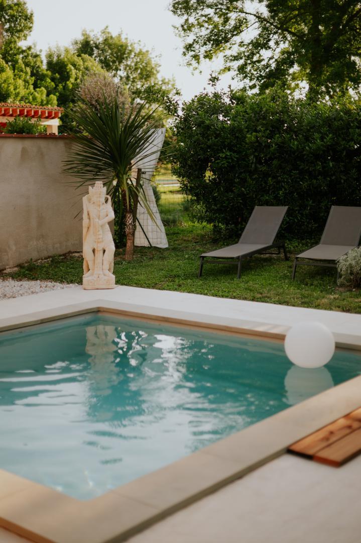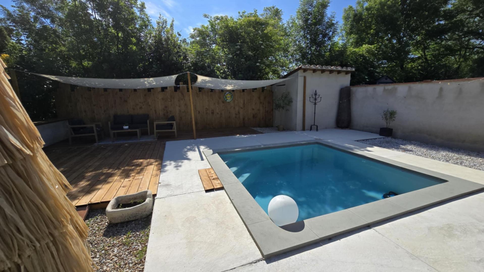 Dans un cadre bucolique, charmant hébergement avec piscine privative et grand terrain arboré et fleuri, à 6km du Grand Site de la région Occitanie : Revel-Lac-Saint-Ferréol !