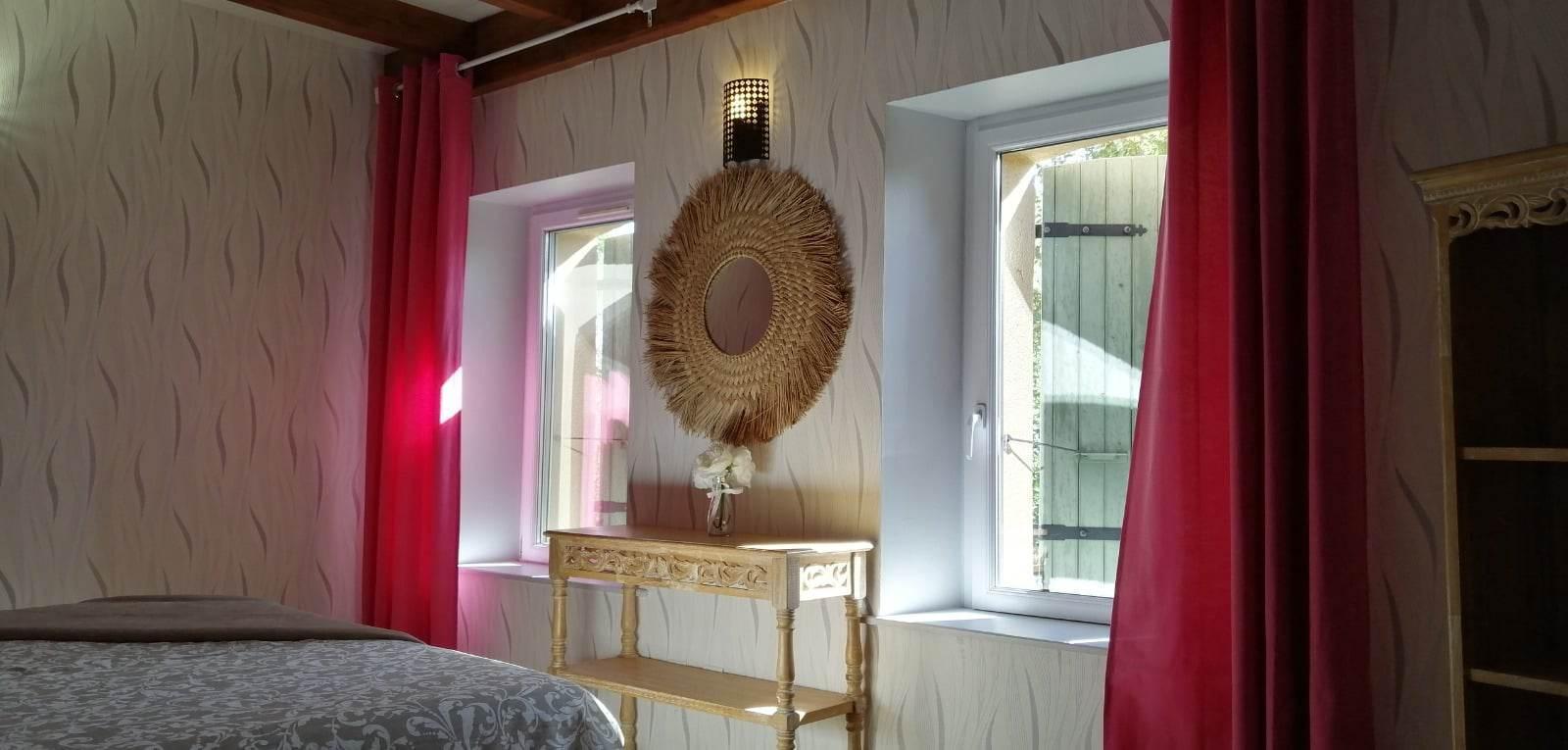Chambre Ô de Bleuet : 1 lit King size 180×200 salle d’eau et WC communs