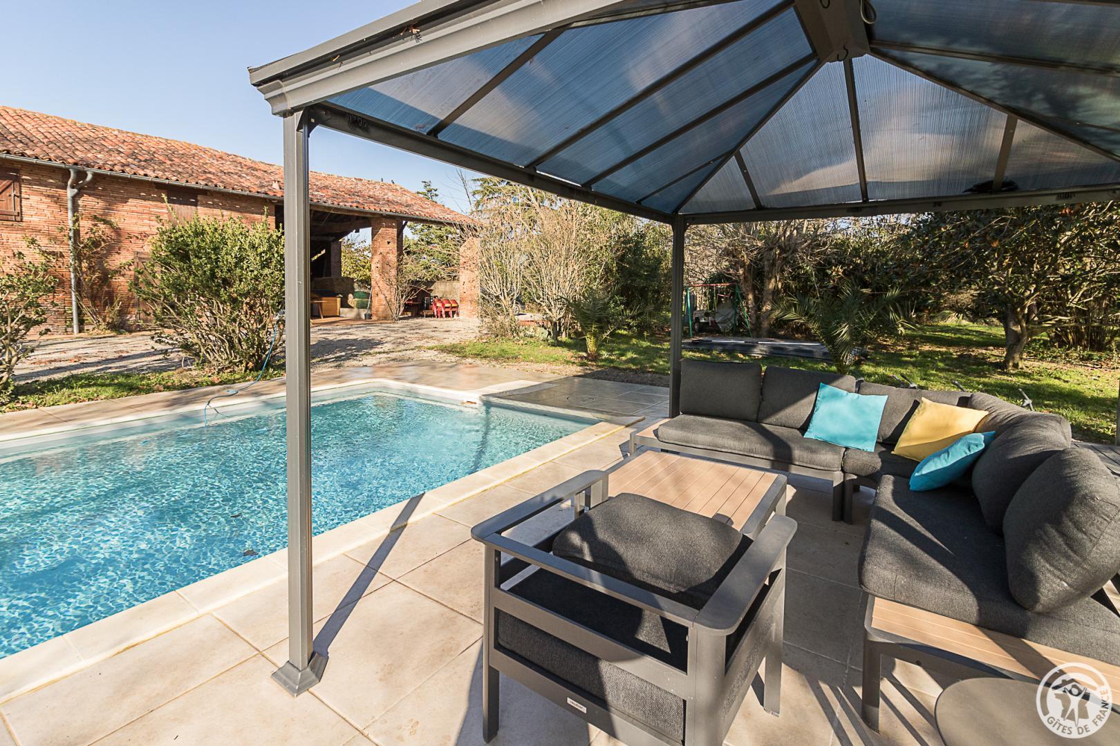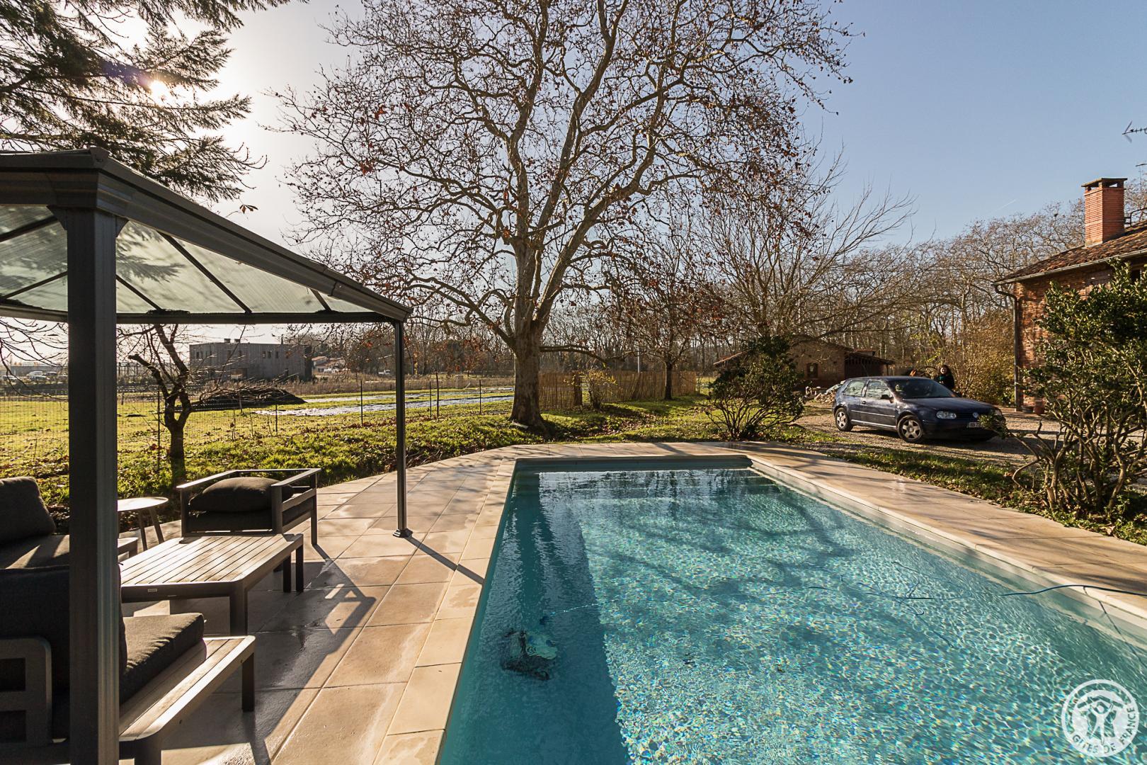 Gîte avec piscine commune aménagé sur une ferme maraîchère bio, dans une belle maison de brique, le long du Canal du Midi, à 10km de Toulouse