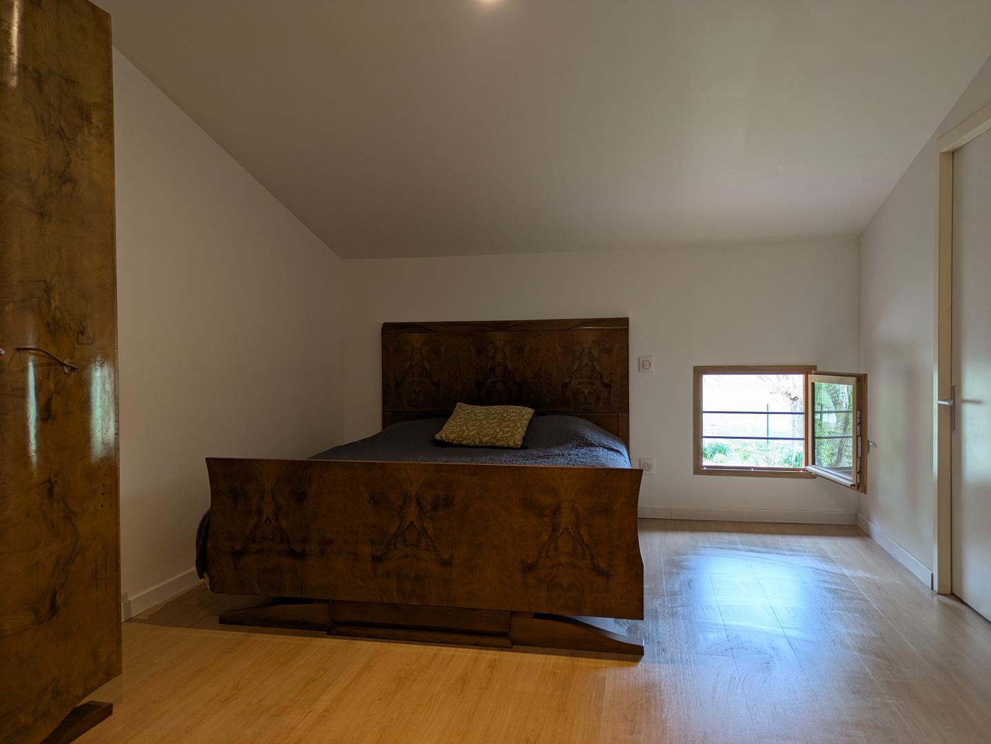 Vous pourrez disposer pendant votre séjour de l’espace extérieur commun (parc, terrasse couverte sous l’ancien hangar, piscine, aire de stationnement limitée pour le gîte à 2 véhicules). Vélos à disposition. Sandrine habite le logement mitoyen.