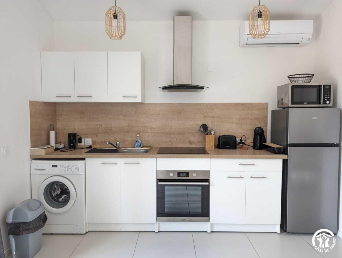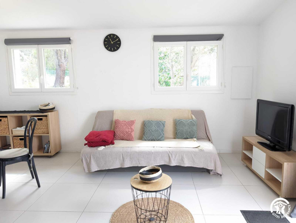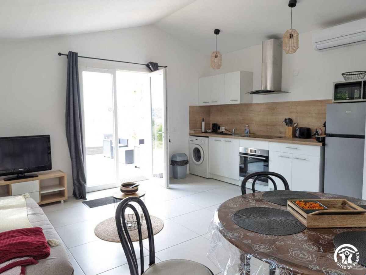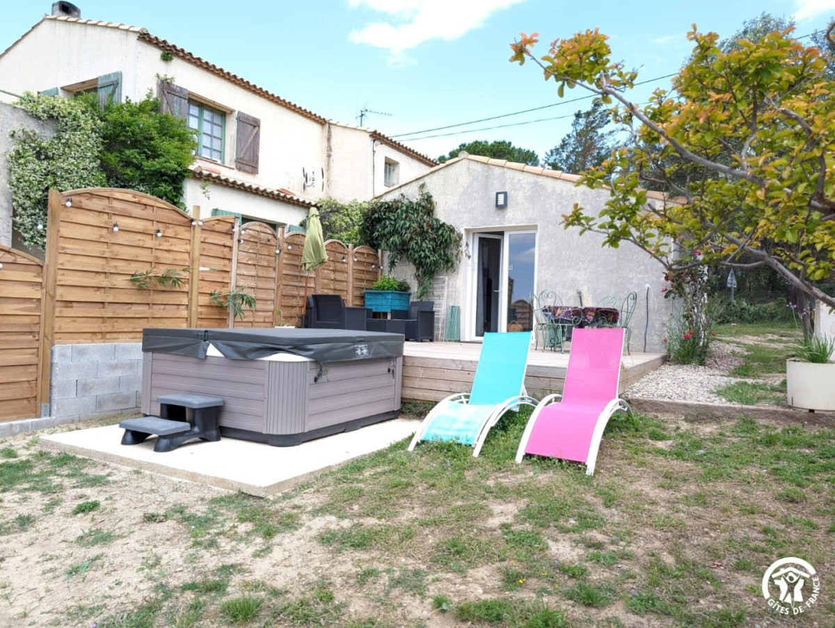 Ce gîte peut accueillir 2 personnes. Tout à côté, vous pourrez découvrir l’étang de Montady, célèbre pour sa forme unique en étoile, résultant d’un ancien système de drainage médiéval. Idéal pour la randonnée et l’observation des oiseaux. Mais encore, ne manquez pas l’Oppidum d’Ensérune, site archéologique d’un ancien village gaulois. Parcourez à pied ou à vélo le Canal du Midi et faites une pause aux 9 écluses de Fonséranes. Plus au sud, activités nautiques ou farniente sur le sable des plages de Sérignan ou Valras. Beaucoup d’animations vous attendent sur la côte Méditerranéenne. Au nord, découvrez le charme du parc naturel du Haut-Languedoc avec ses lacs, rivières, sentiers de randonnées… Le gîte se situe sur une vaste propriété sur laquelle on trouve la maison des propriétaires ainsi qu’un second gîte. Maisonnette indépendante sans aucun vis-à-vis ainsi composée : Séjour/cuisine avec canapé, table basse et table à manger, TV, wifi, cuisine équipée : four, four micro-onde, frigo, plaques de cuisson, grille-pain , cafetière classique et Dolce Gusto, machine à laver et tout le nécessaire pour cuisiner. Une chambre double avec un lit en 140*200 ouverte sur la salle d’eau, et WC séparé. Une terrasse avec vue dégagée, avec jacuzzi privatif chauffé toute l’année et meubles de jardin Une piscine commune extérieure (9x4m) chauffée de Mai à Octobre (à partager avec les propriétaire et les clients du 2ème gîte).Le canapé est convertible et peut servir de lit d’appoint sur demande auprès du service réservation. Vous pourrez vous garer sur le terrain.