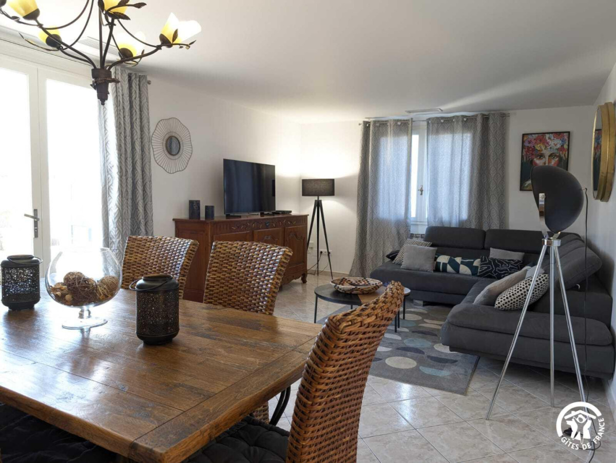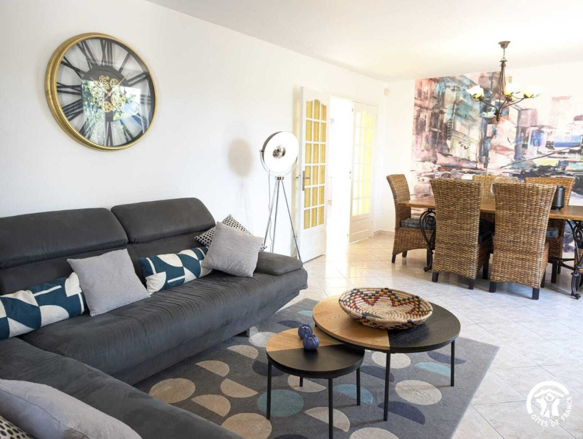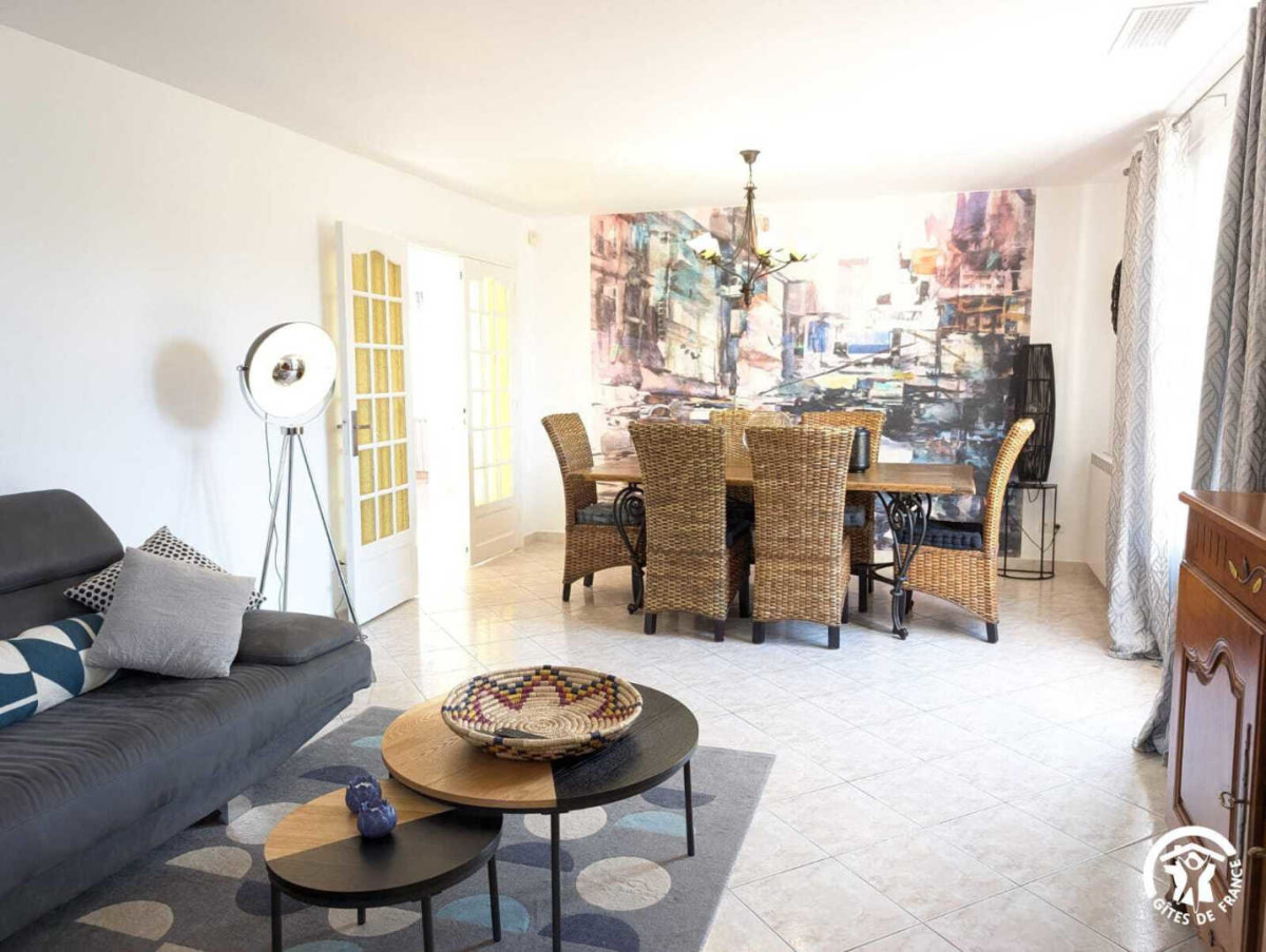 Vous pourrez rejoindre la plage (à 800m) à pied ou à vélo par la piste cyclable qui longe le canal. Le centre-ville, avec ses commerces et restaurants, est également accessible à pied ! L’été, profitez de toutes les animations estivales de la commune de Agde. Plus au nord, le canal du Midi vous attend pour de belles balades à vélo. Ne manquez pas non plus de flâner dans les ruelles de la ville médiévale de Pézenas et découvrez l’artisanat local. Votre gîte : – Cuisine tout équipée (frigo, four, micro-onde, lave-vaisselle, etc) – Salon avec une grande table à manger et un espace cosy avec canapé et télévision – 3 chambres : – 2 chambres doubles avec lit en 140*190, commode, rangement – 1 chambre disposant de lits superposés. Le lit du bas fait 140*190cm et celui du haut 90*190cm, idéale pour des enfants. – 1 à 2 couchages d’appoint supplémentaires sont possibles, contacter la réservation. L’extérieur : – Jardin sans vis-à-vis, aménagé avec tables chaises, salon de jardin et espace détente. – Cuisine extérieure avec évier, grand barbecue, micro-onde – Piscine hors-sol sécurisée Vous pourrez garer votre voiture sur le terrain fermé avec un portail Possibilité également de rentrer un bateau. Une mise à l’eau est accessible à 200m sur l’Hérault.