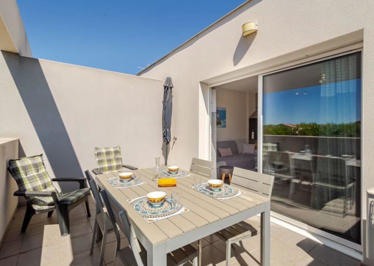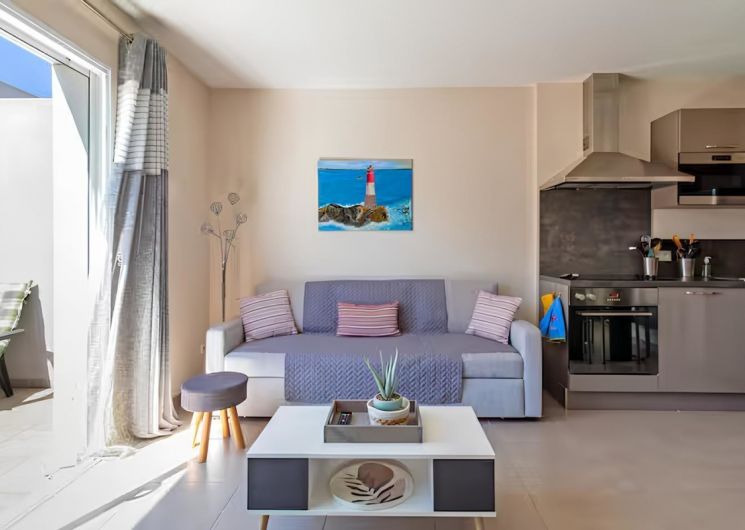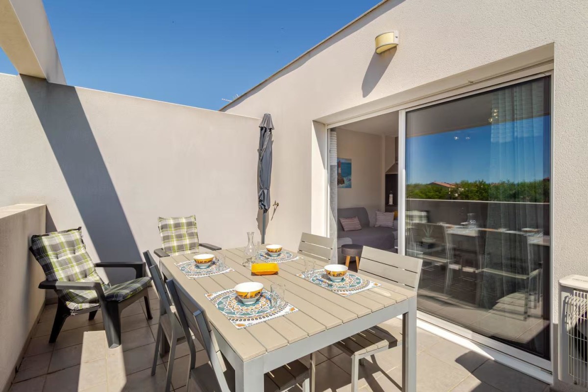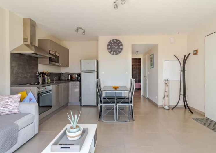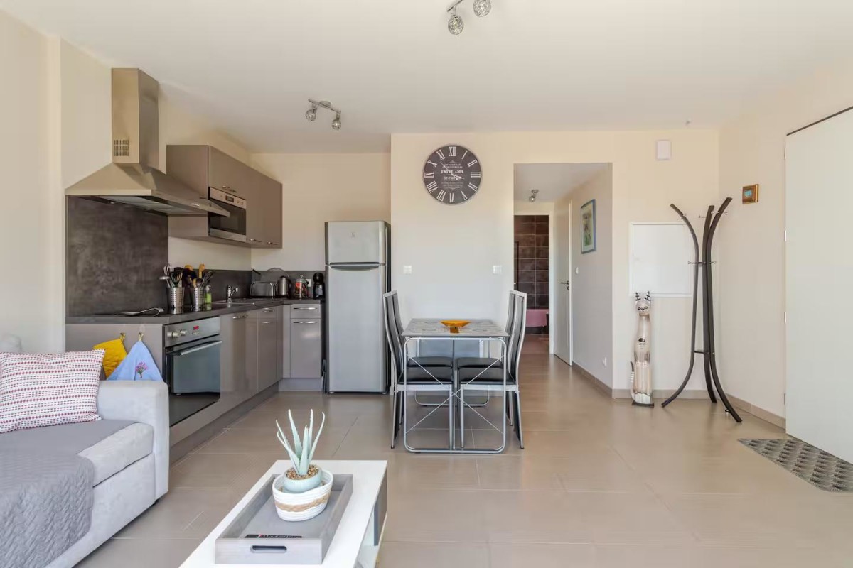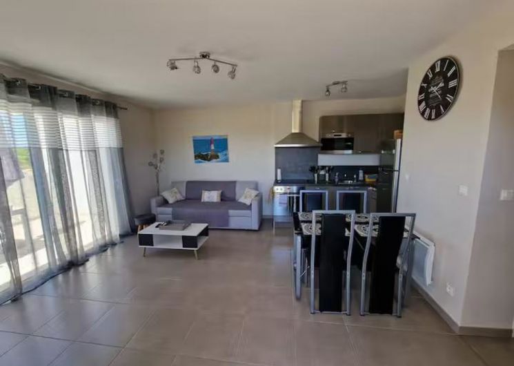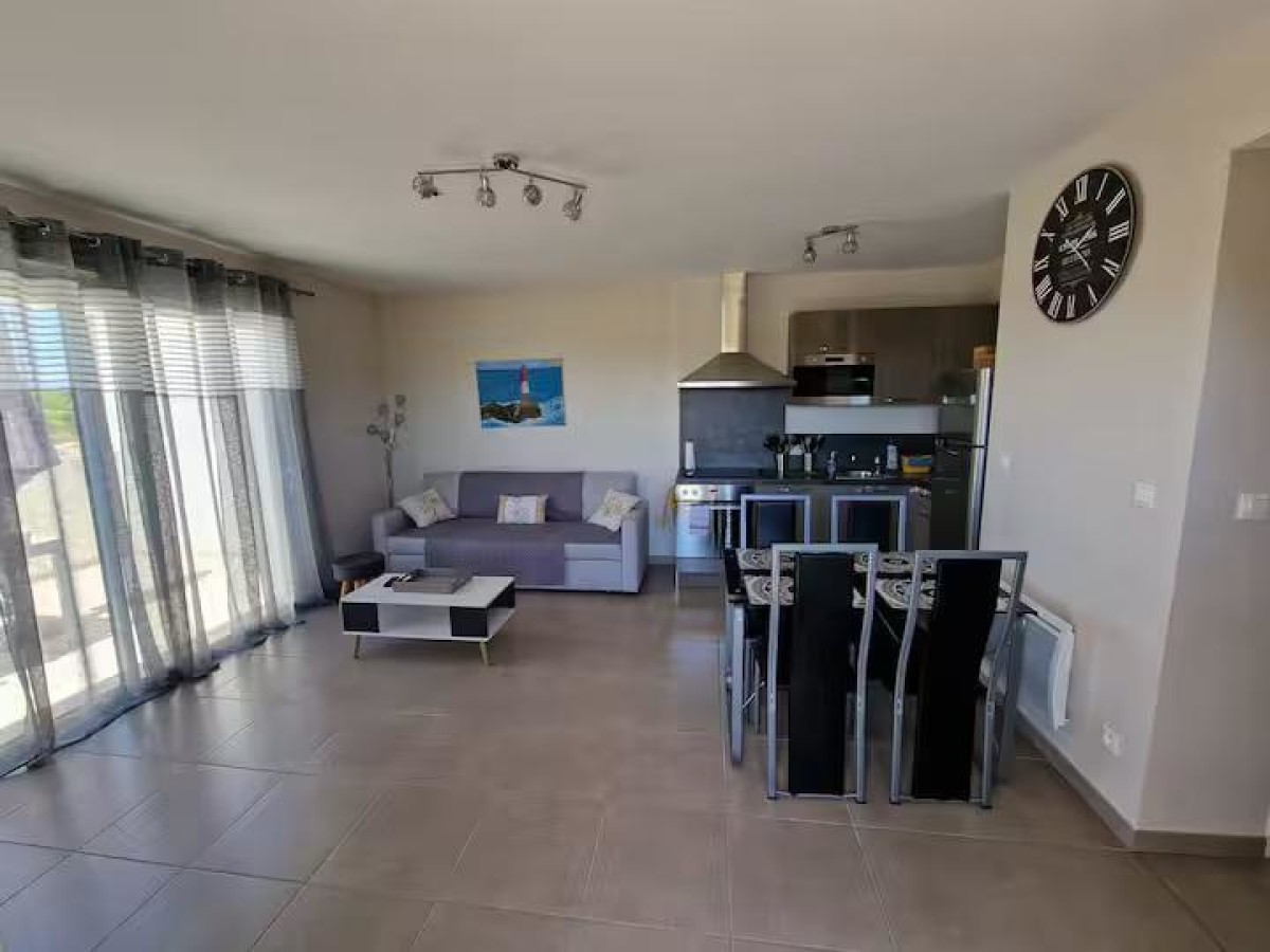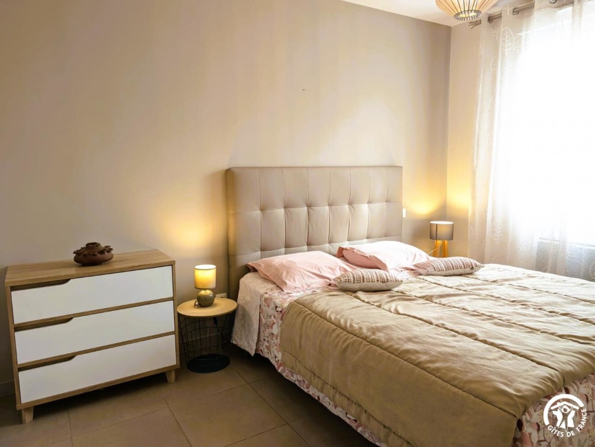 Situé dans le village de Colombiers, au bord du célèbre Canal du Midi, votre gîte bénéficie d’un emplacement apprécié des voyageurs souhaitant découvrir les 9 Écluses de Fonseranes ou profiter des itinéraires de balade aménagés autour du port. Ce secteur de l’Hérault offre un patrimoine unique où se mêlent histoire fluviale, nature et villages viticoles. En séjournant ici, vous rejoignez facilement le centre du village, ses commerces et services, ainsi que les points d’intérêt qui font la renommée de ce territoire. Située au premier étage dans une petite résidence récente, la location propose des espaces modernes, fonctionnels et lumineux. Vous profitez d’une pièce de vie avec cuisine ouverte. La cuisine est parfaitement équipée avec lave-vaisselle, four traditionnel, four micro-ondes, plaques de cuisson, réfrigérateur et cafetière Dolce Gusto, . Vous trouverez ensuite une table à manger et des chaises pour vos repas en famille ainsi qu’un canapé dépliable en véritable lit pour 2 couchage, une table basse et une télévision. La salle de bain est équipée d’une baignoire, d’une vasque et d’un sèche-serviettes électrique Les toilettes sont indépendantes. La chambre de 10.5m2 dispose d’un lit en 160 × 200. La terrasse ombragée, aménagée avec meubles de jardin et parasol, offre un lieu agréable pour prendre vos repas en extérieur. À l’avant de la maison, un stationnement privé facilite votre arrivée et vos déplacements durant le séjour, ainsi qu’un garage de 17m2. Vous bénéficiez également de la climatisation, idéale en période estivale, d’un lave-linge et de jeux de société pour agrémenter vos soirées. Ce gîte constitue un point de départ idéal pour découvrir Colombiers et son environnement, tout en profitant d’un hébergement récent, pratique et confortable. A 200 m de la clinique Causse, du port de plaisance, du Canal du Midi et de l’hyper centre.
