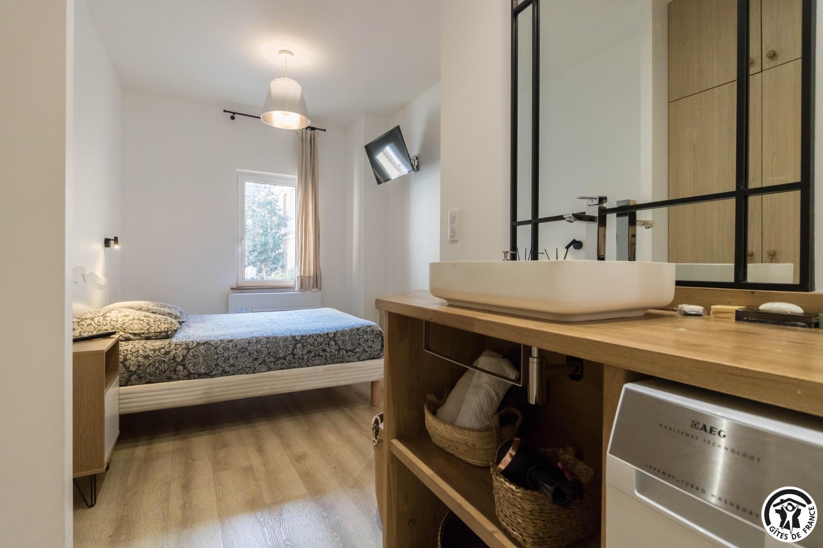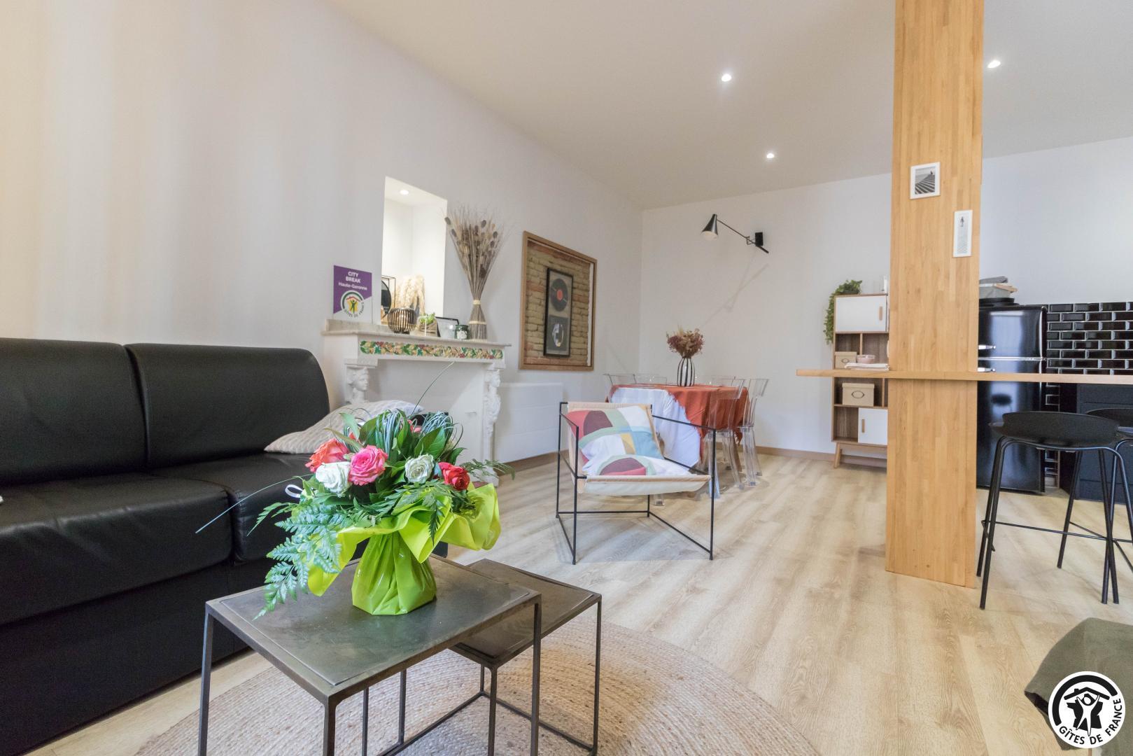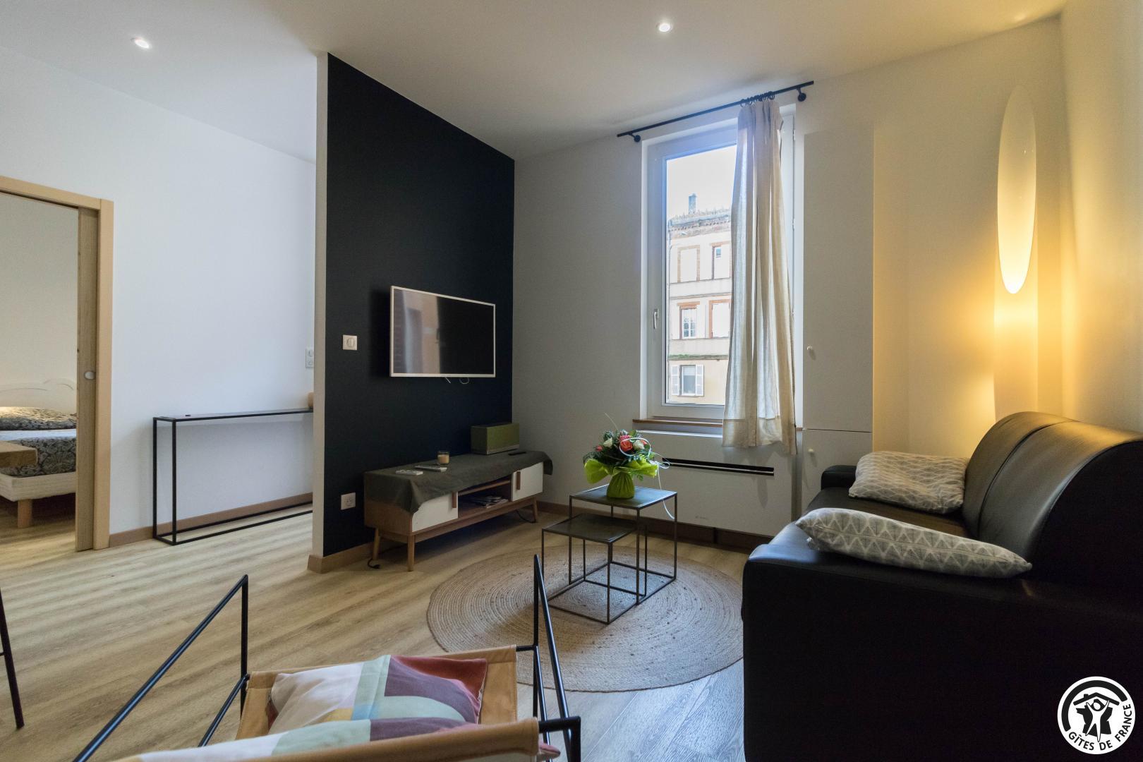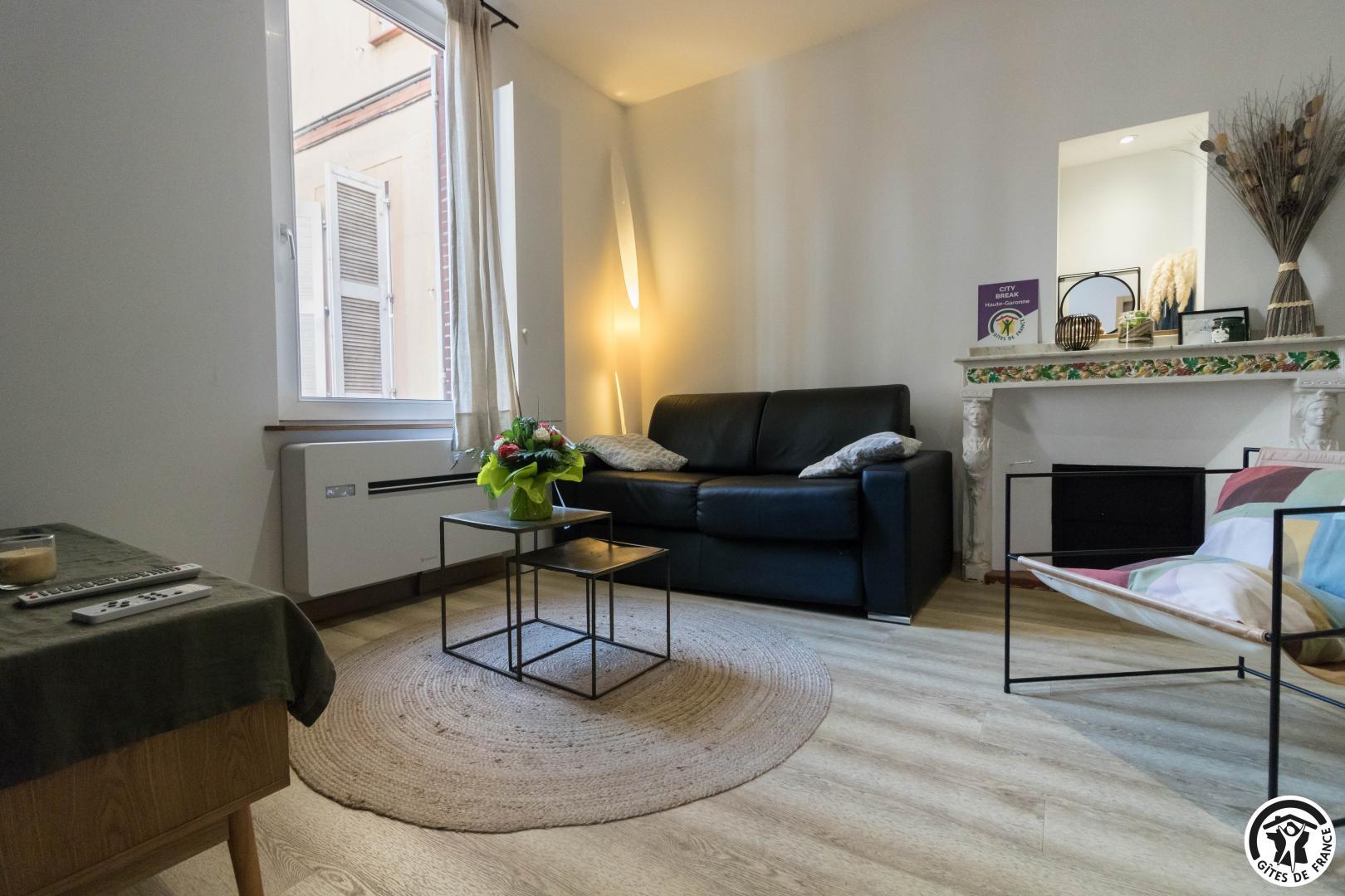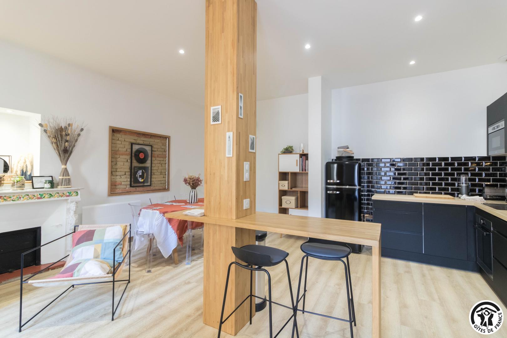 Le confort et le calme de la ville, c’est ce que vous trouverez dans ce magnifique appartement de plain-pied à 2 pas de la station de métro Jean-Jaurés et donc dans le centre historique de la capitale de la région Occitanie. Dans la pièce principale, vous remarquerez une ouverture sur les briques apparentes très joliment agrémentée d’un 33 tour de Daft Punk. Ainsi, Antoine, le propriétaire, vous offre un séjour authentique et original dans la ville rose. Vous aurez accès à une cuisine incroyablement bien équipée, intégrée à une pièce principale charmante et calme (enceinte Bluetooth). Il y a un canapé convertible pour une personne dans le coin salon. La chambre séparée possède une TV, une salle d’eau ouverte et privative, ainsi qu’un WC séparé. En plus, la climatisation réversible est présente dans les 2 pièces ! Un rack à vélo public est disponible dans la cour.