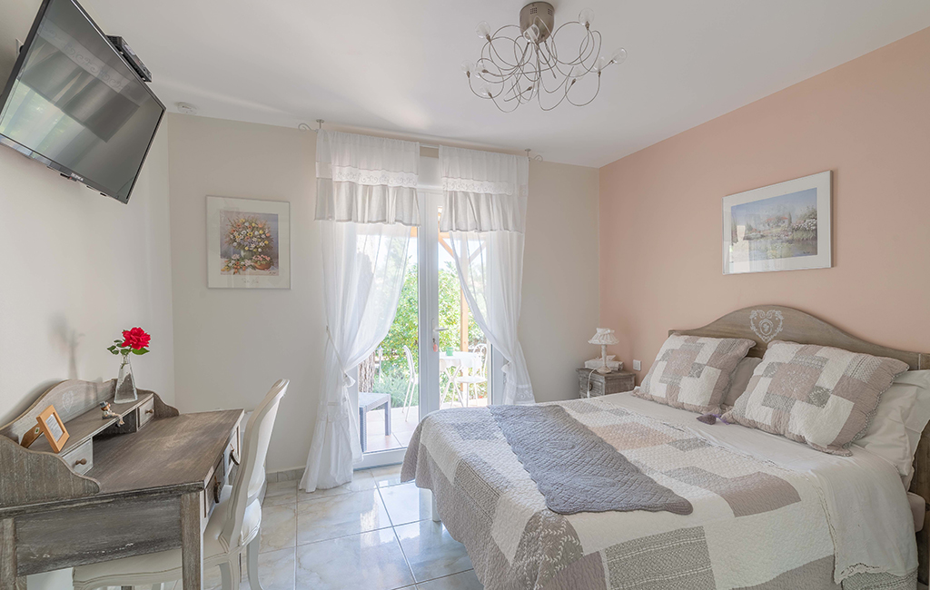 Au milieu de pins, vous pourrez séjourner dans l’une des trois chambres en rez-de-jardin, toutes dotées d’une entrée indépendante, terrasse privative avec table et petit salon, climatisation, TV écran plat avec chaînes satellites, wifi gratuit, salle d’eau privative (douche, lavabo, meuble, toilettes, sèche-serviettes, sèche-cheveux).