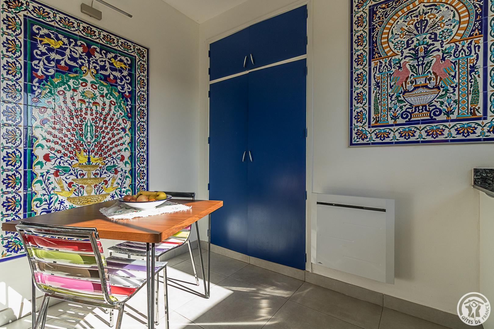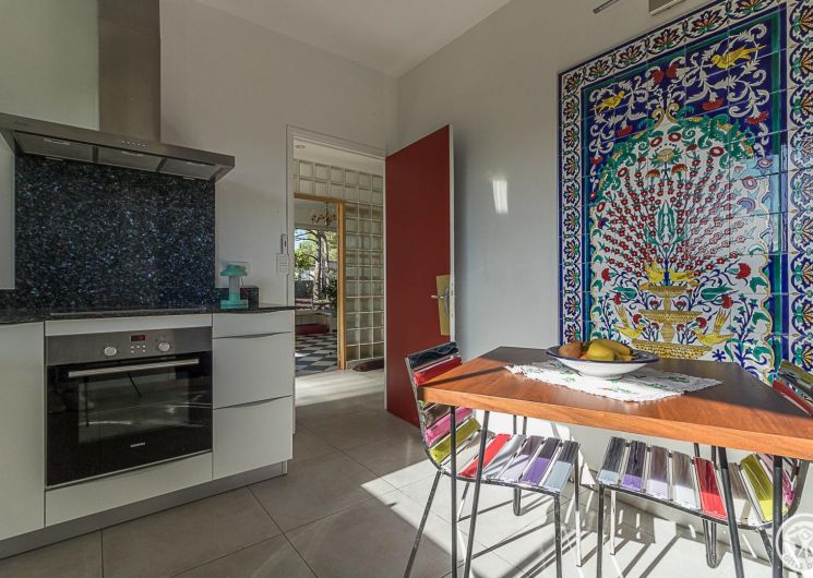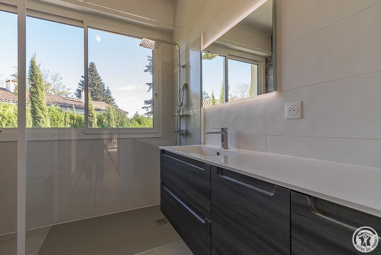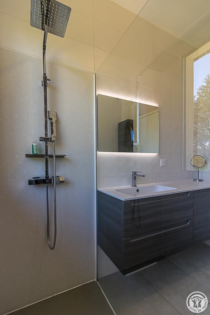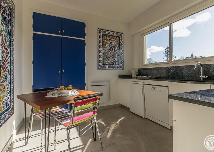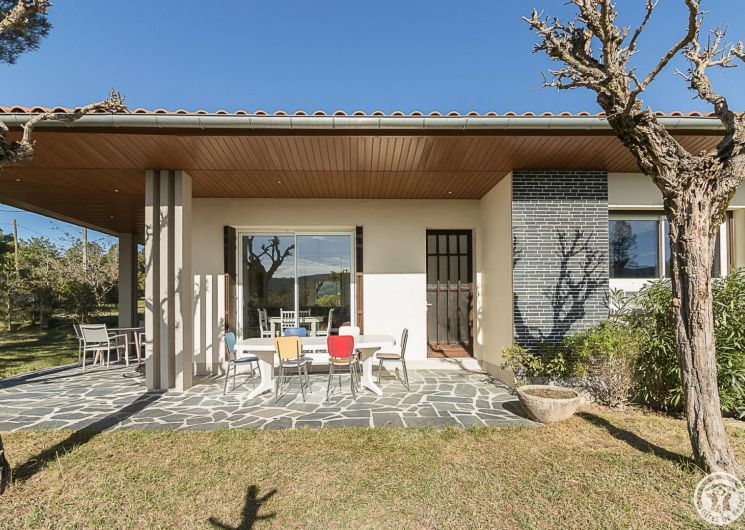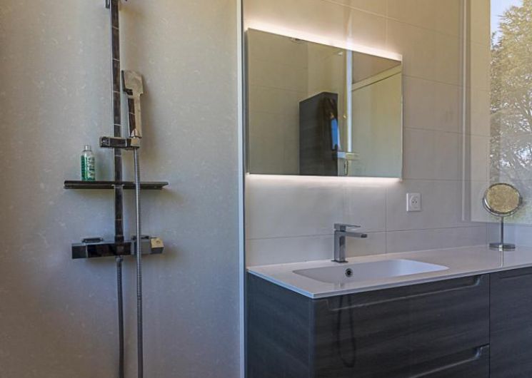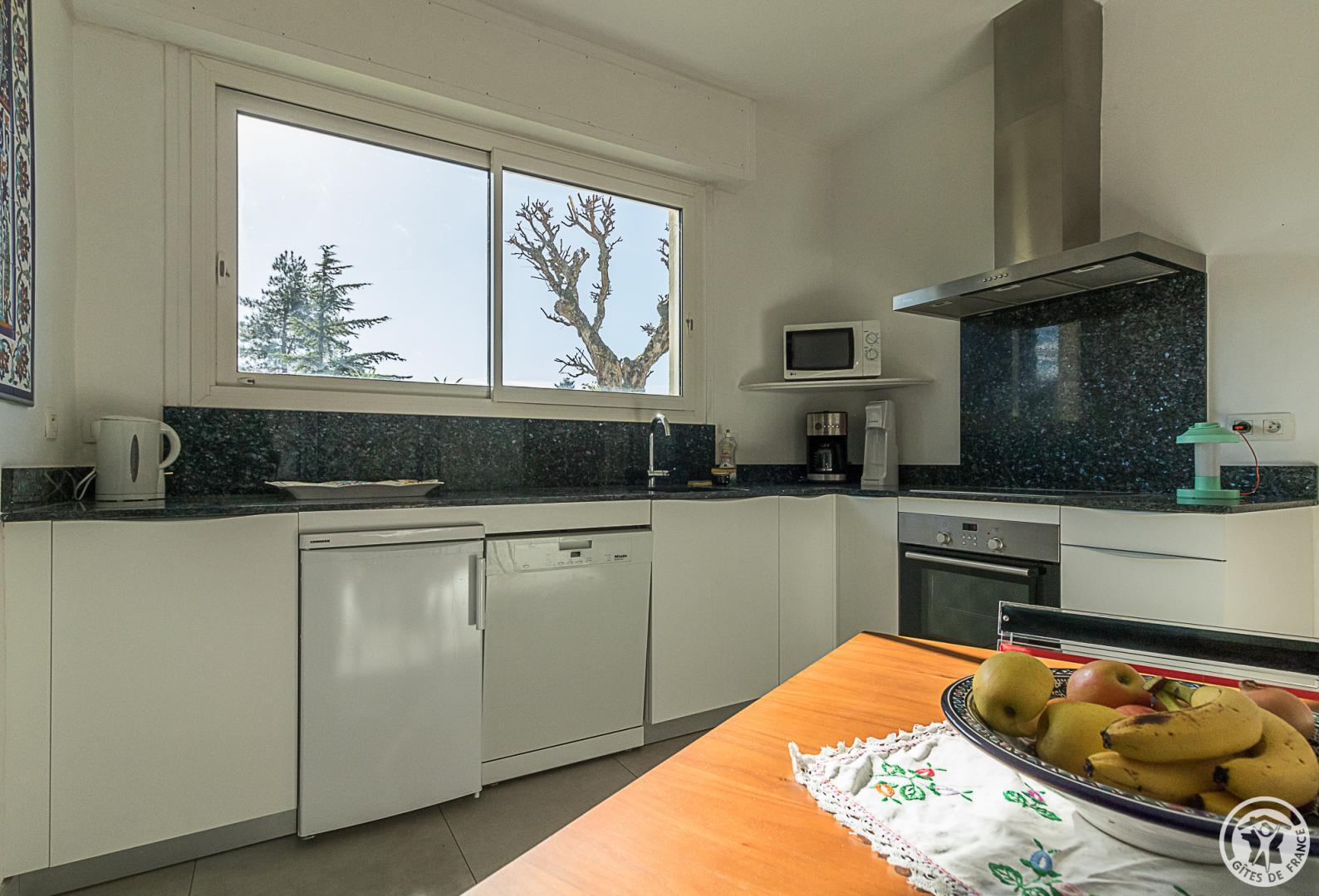 La Villa Horizon est aménagée de plain-pied. L’accès se fait par le bas du terrain et quelques marches permettent de rejoindre l’entrée (un autre accès de plain pied est possible pour les personnes peu mobiles). Le hall dessert une cuisine indépendante et la salle de séjour, ouverte sur la terrasse et baignée de lumière grâce à ses larges baies vitrées. Un couloir conduit aux 3 chambres accueillant chacune un lit pour 2 personnes en 140cm, à la salle d’eau/WC et à un WC indépendant. Chauffage électrique
