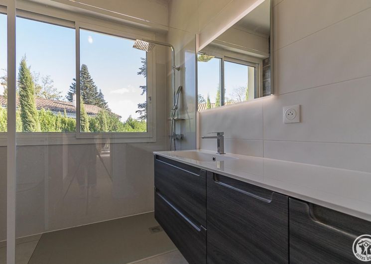 Sur le site de Saint-Ferréol, cette villa indépendante est idéale pour l’accueil de familles en vacances ! Le jardin clos arboré invite autant à la détente et au repos qu’aux parties de pétanque de fin de journée ou aux jeux de ballon des enfants, en toute sécurité. Une grande terrasse couverte borde la maison sur les côtés Sud et Ouest, pour des repas conviviaux abrités du soleil, à l’ombre d’un immense pin parasol. Possibilité de stationnement dans la propriété. Garage au sous sol de la maison pour les vélos et les motos uniquement. Animaux non admis. Maison entièrement climatisée. PAC réversible.