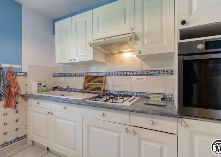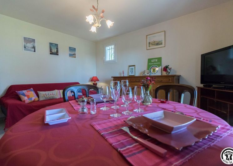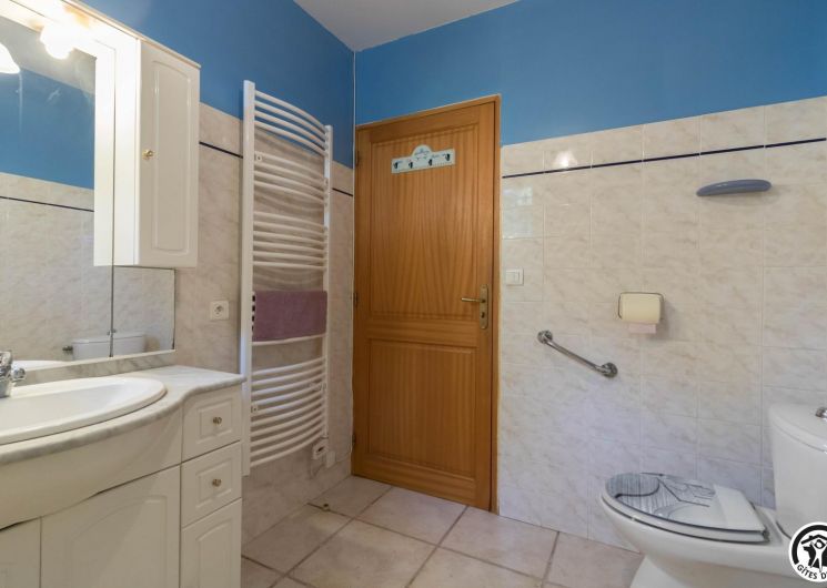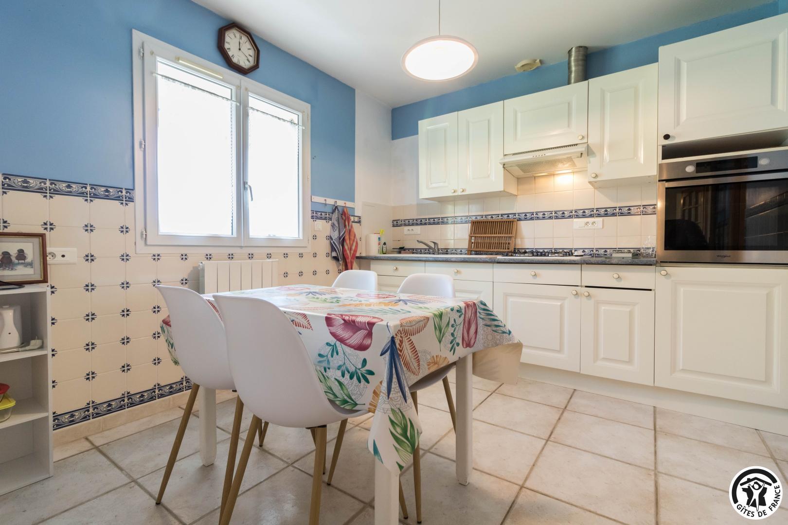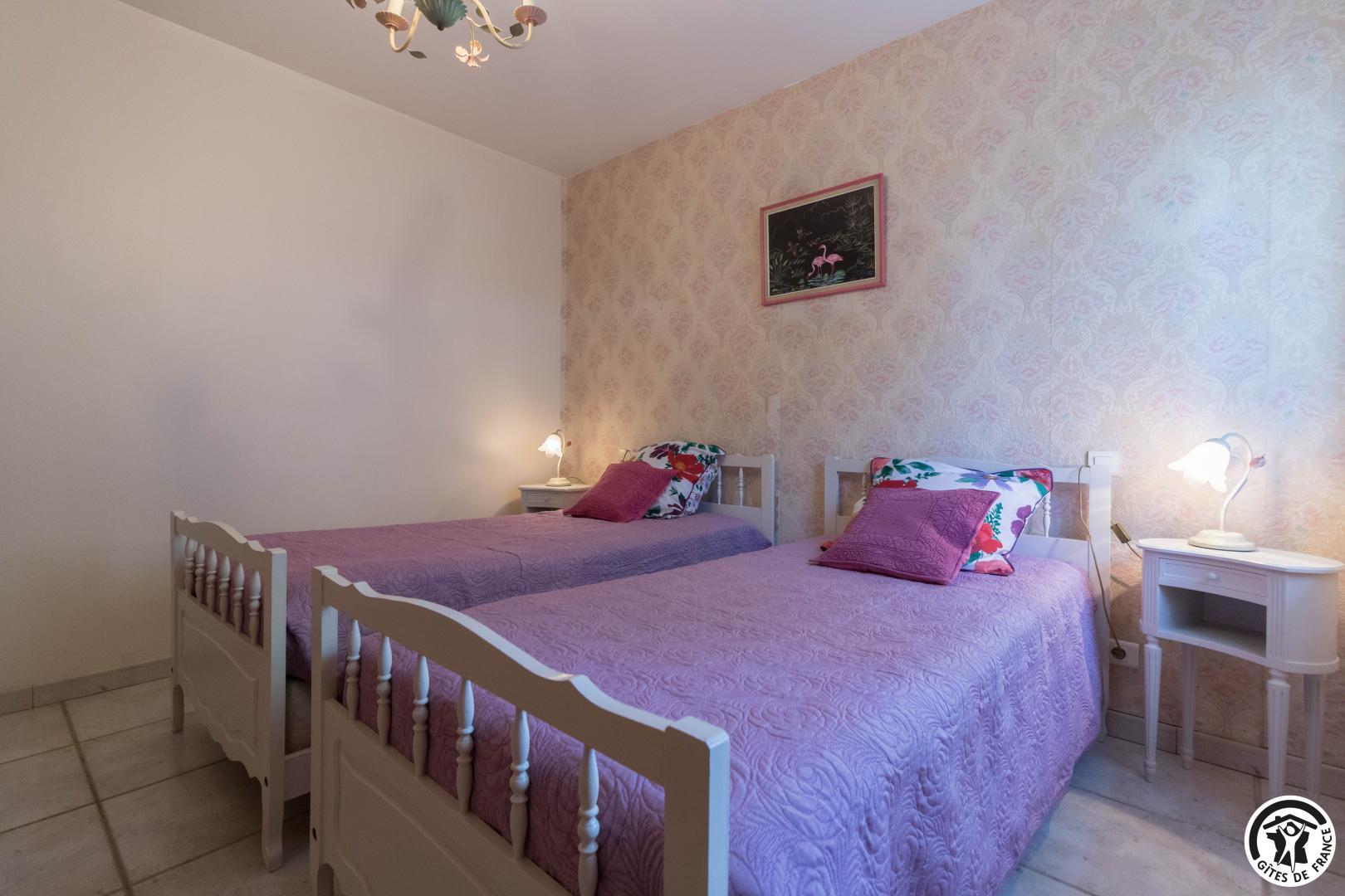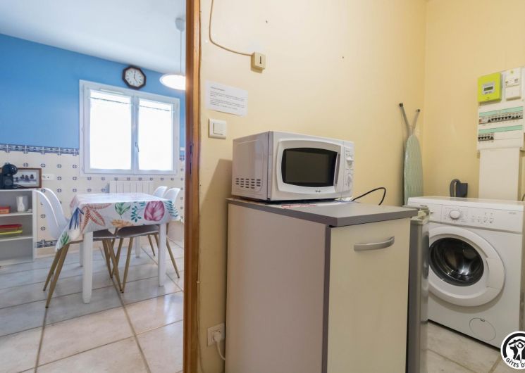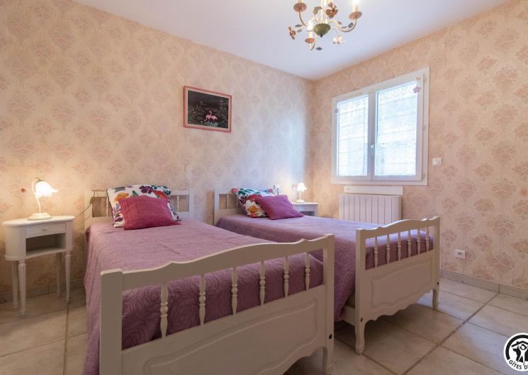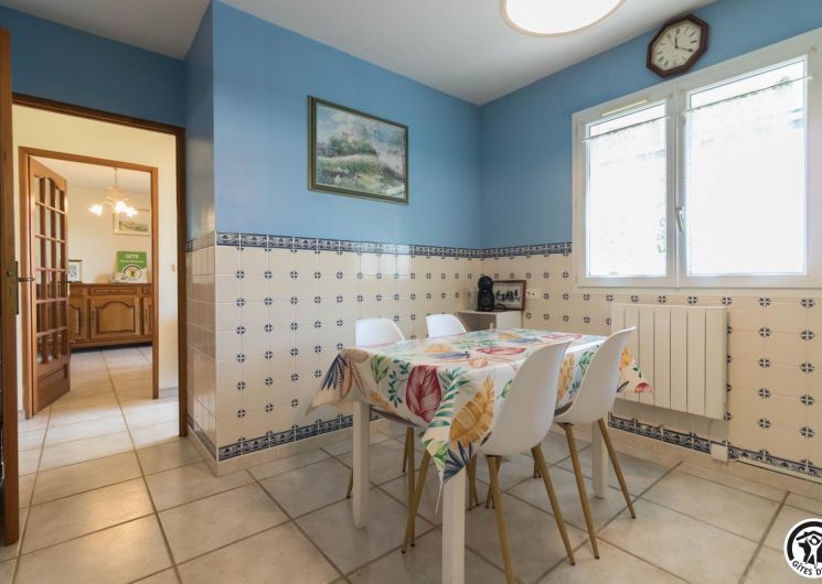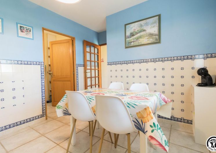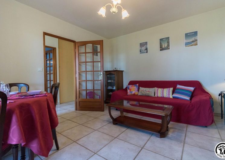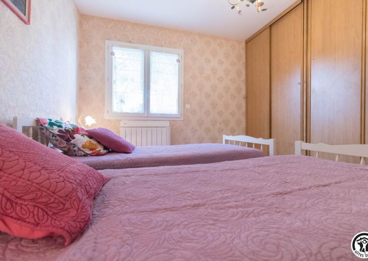 Maison de vacances de plain-pied, idéal pour les personnes ayant des difficultés à se déplacer : 2 chambres (1 lit double en 140*190cm)(2 lits simples en 90*190cm), une cuisine séparée (plus une arrière cuisine), un salon/salle à manger et une salle d’eau avec WC (avec barres d’appui). Chauffage électrique. Internet par box WIFI.