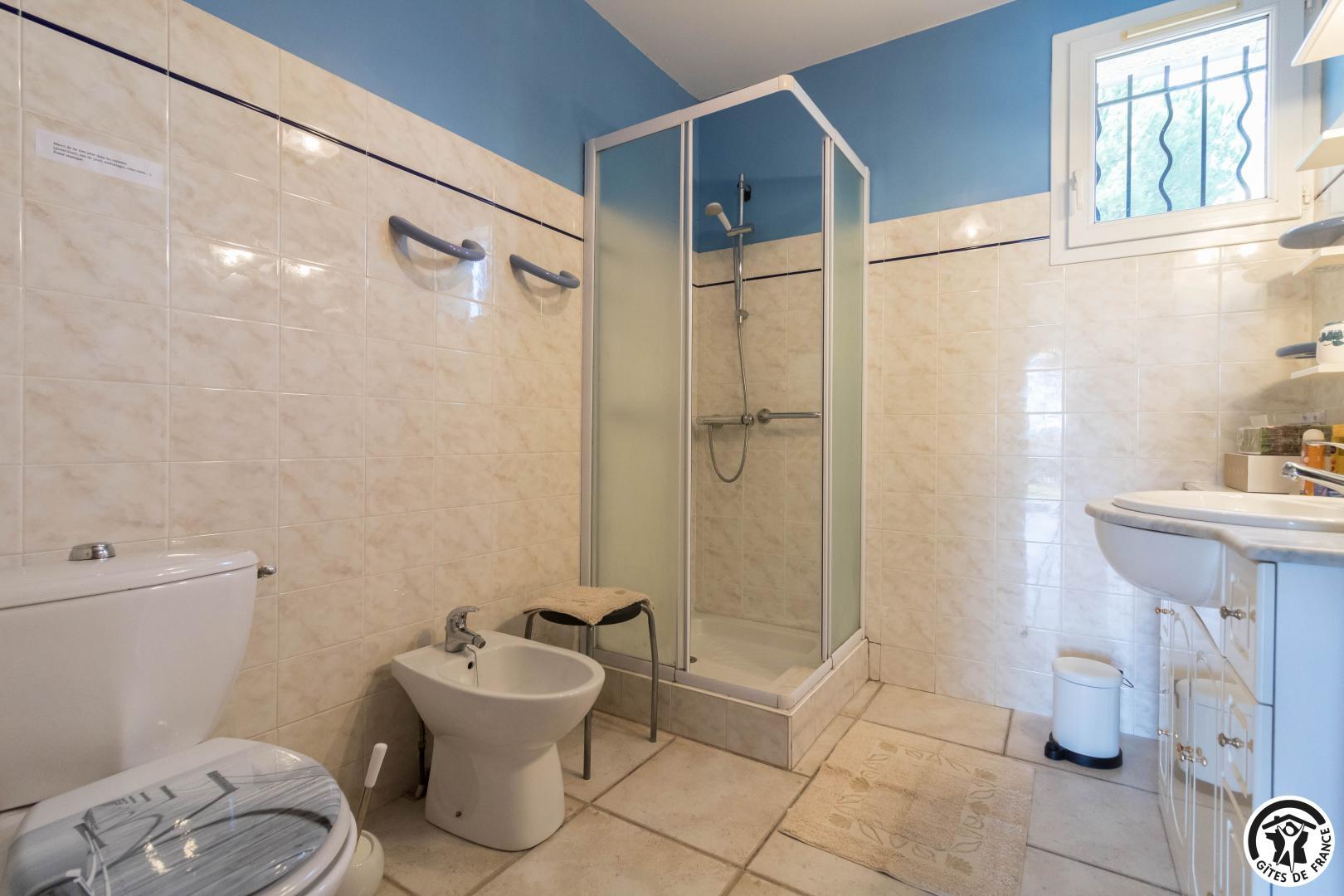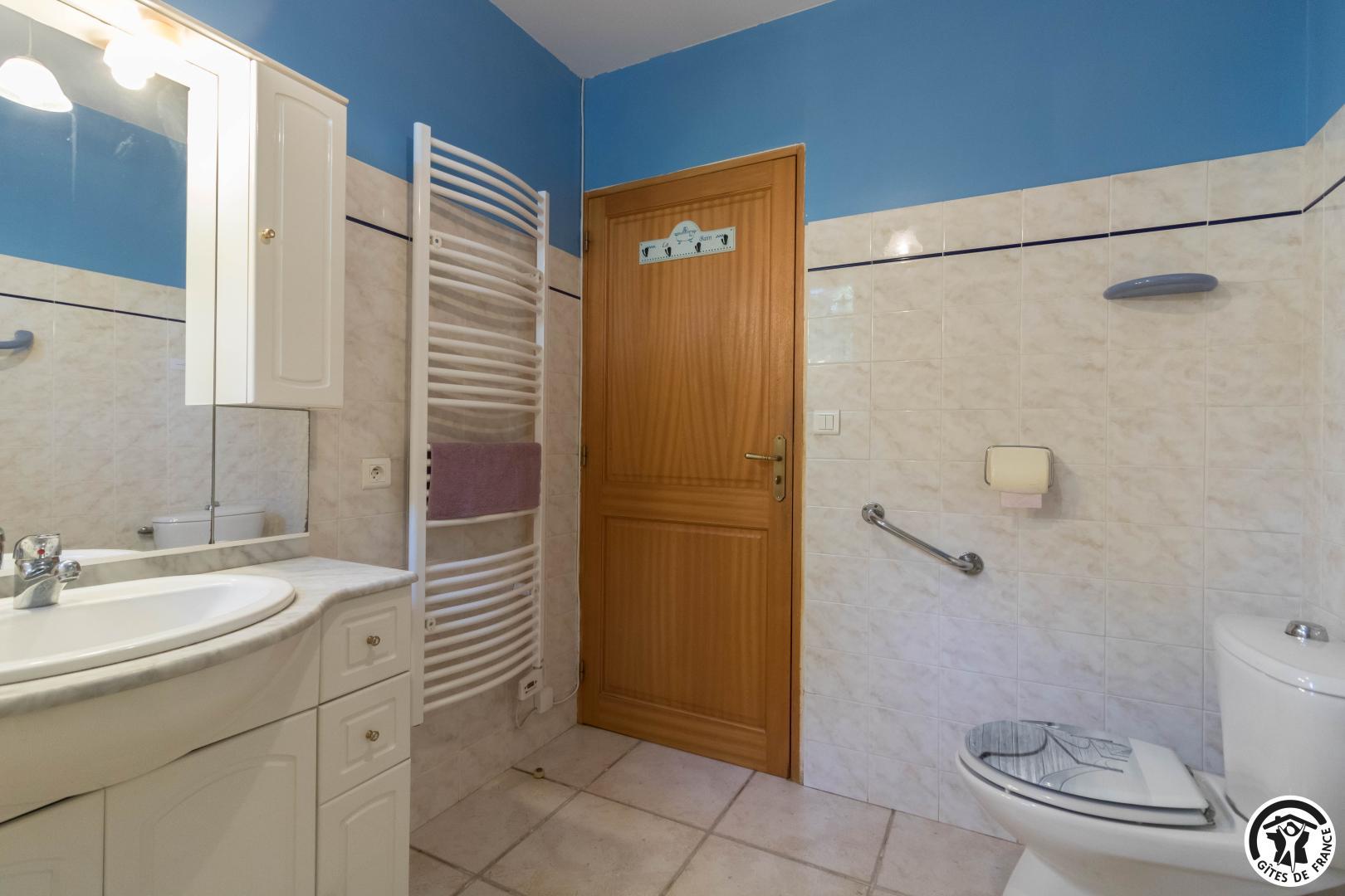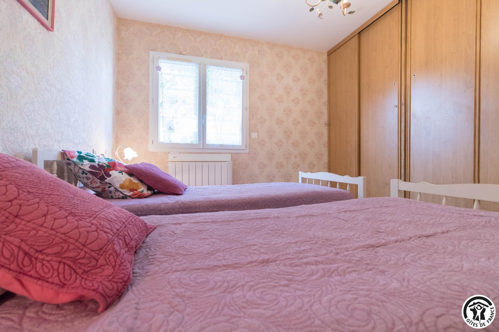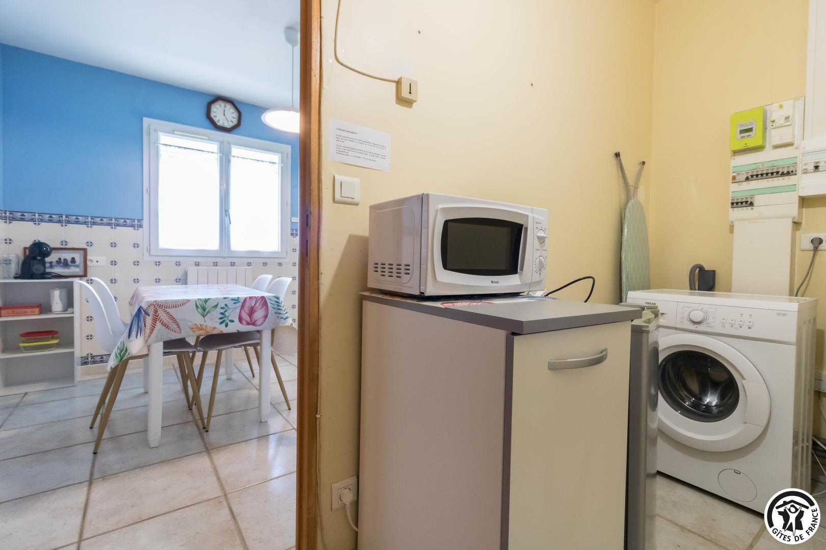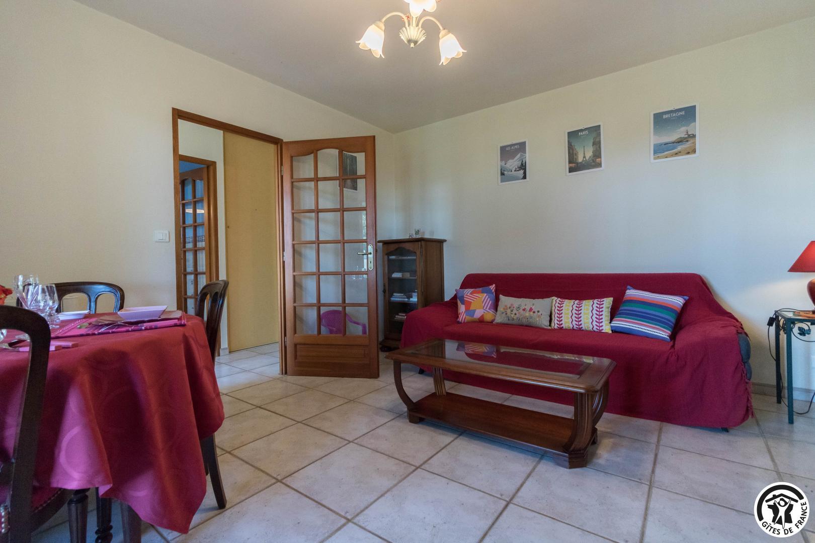 Maison de vacances de plain-pied, idéal pour les personnes ayant des difficultés à se déplacer : 2 chambres (1 lit double en 140*190cm)(2 lits simples en 90*190cm), une cuisine séparée (plus une arrière cuisine), un salon/salle à manger et une salle d’eau avec WC (avec barres d’appui). Chauffage électrique. Internet par box WIFI.