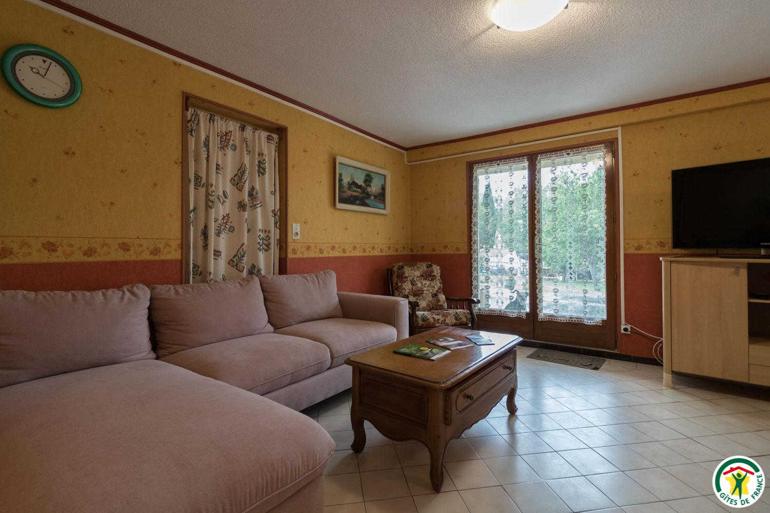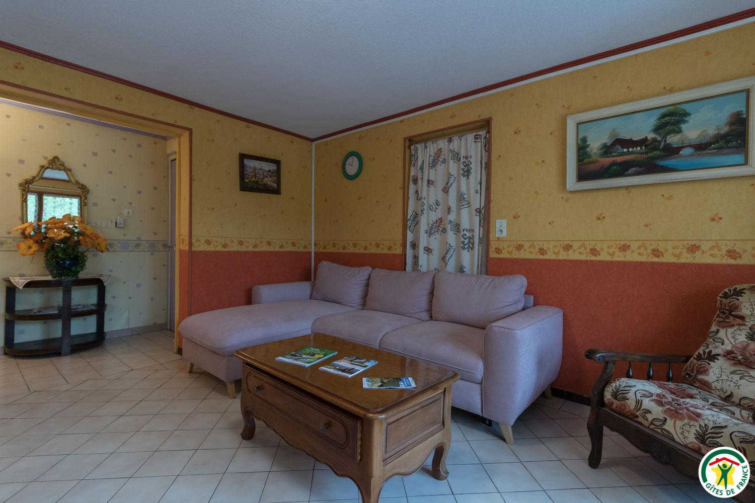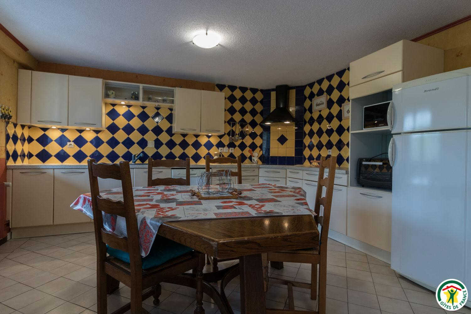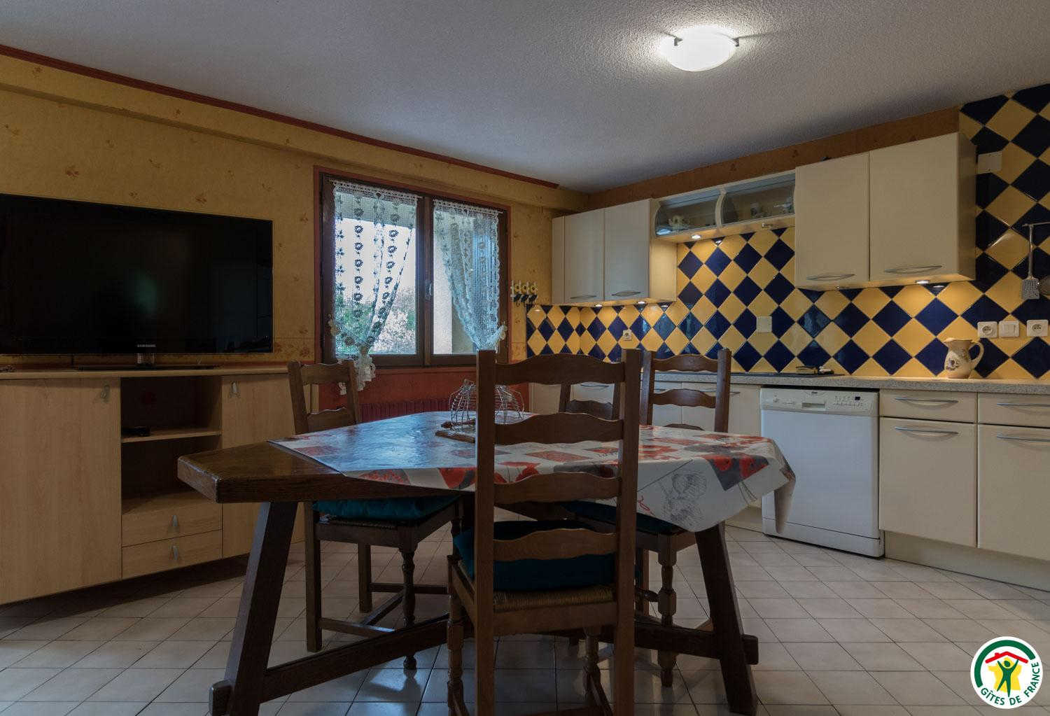 L’hébergement, étant de plain-pied (au rez-de-chaussée de la maison de la propriétaire), sera facile d’accès pour les personnes ayant des difficultés à se déplacer : séjour de 27m2, avec belle cuisine (réfrigérateur-congélateur, lave-vaisselle, micro-ondes, 4 plaques à induction, four à poser et appareil à raclette), coin repas et coin salon (canapé, table basse et grande TV écran plat de 120cm), couloir desservant 2 chambres, une avec 2 lits simples en 90x190cm jumelables, et l’autre avec 1 lit pour 2 personnes en 160*200cm (18m2). Chaque chambre possède sa salle d’eau avec WC.