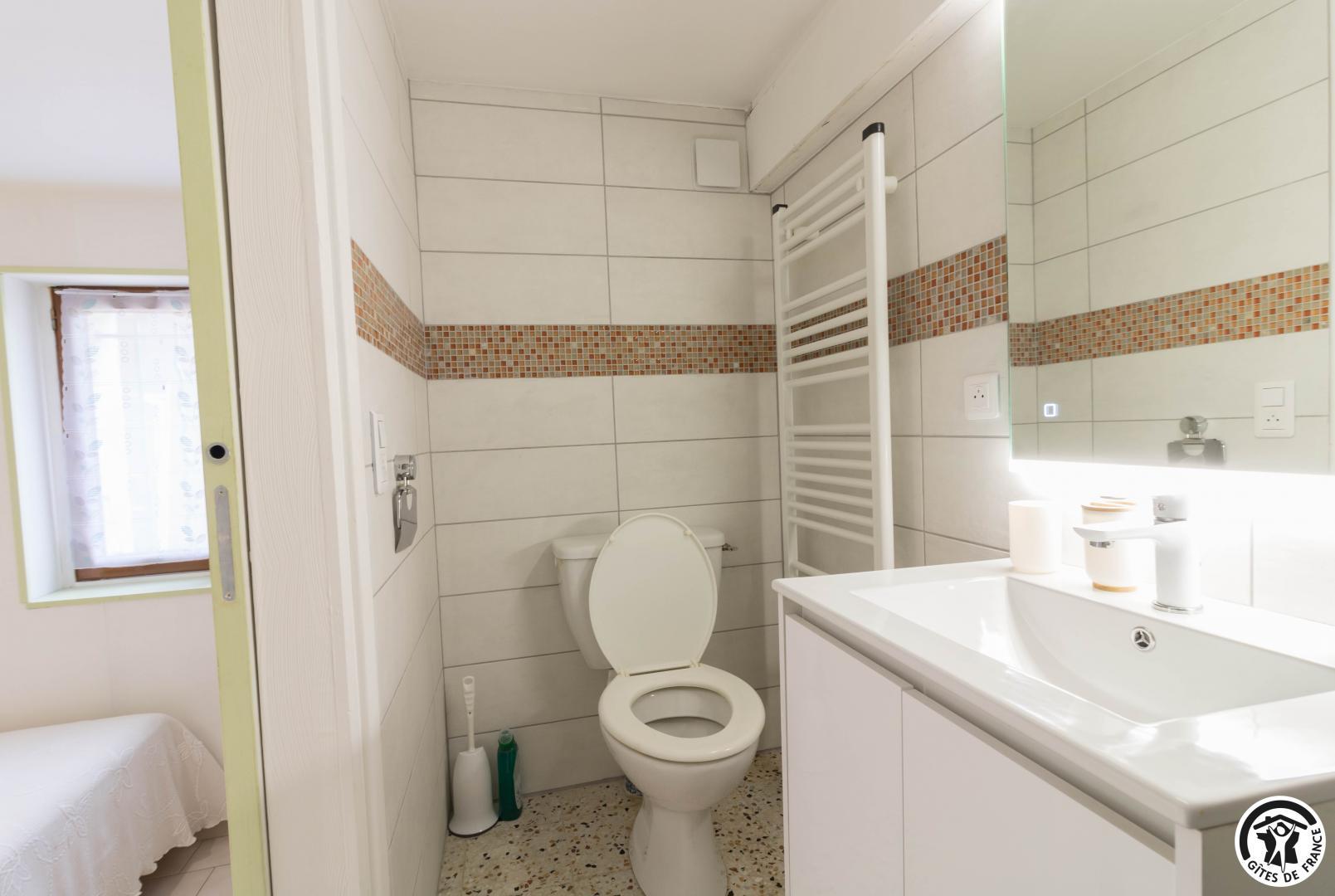 Chauffage granulés de bois et WIFI. Équipement bébé. Jardin en commun clos, avec une terrasse et une partie privative pour les clients (salon de jardin, barbecue et chaises longues).