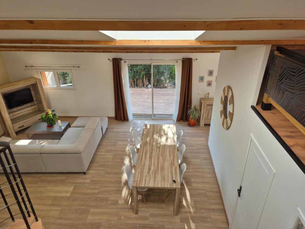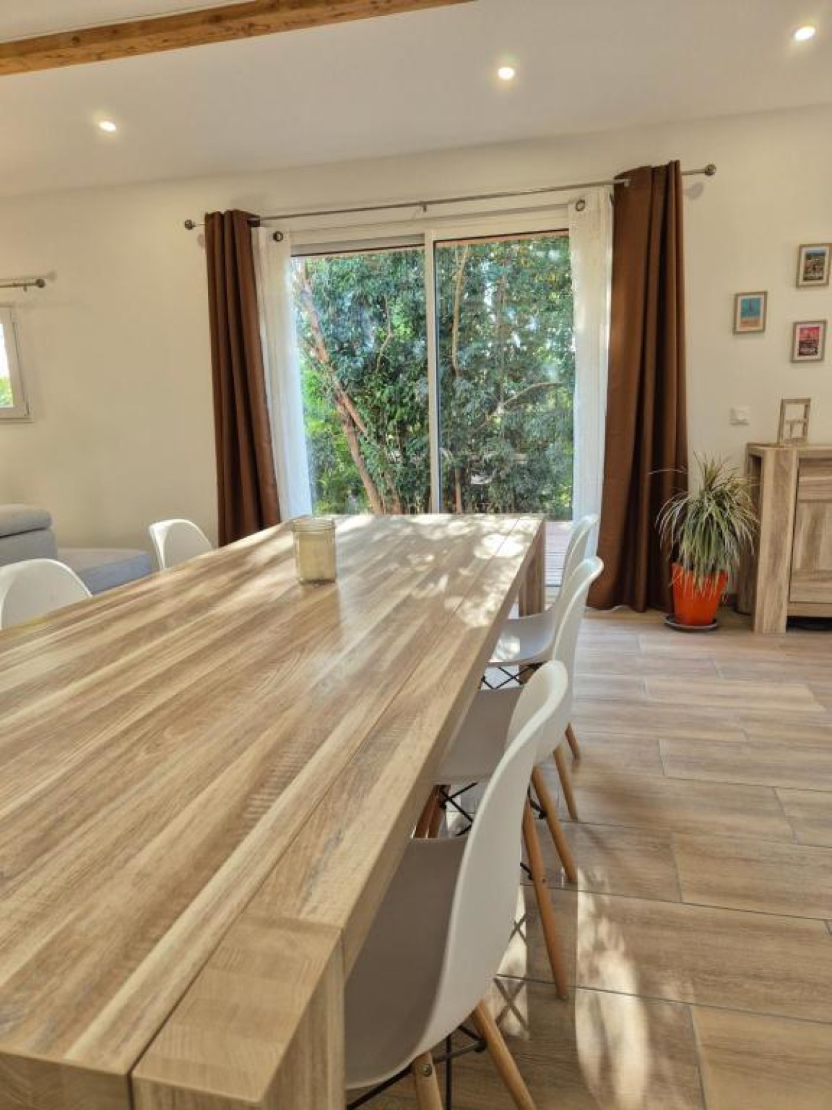Situé dans le charmant village de Roubia, au cœur des Corbières Minervois, Le Gîte du Parc vous accueille dans un environnement paisible et verdoyant, à proximité immédiate du célèbre Canal du Midi. Ce territoire viticole et patrimonial offre une multitude de découvertes : la majestueuse Cité de Carcassonne, les ruelles pittoresques de Minerve ou Lagrasse, les plages de Gruissan, les châteaux cathares et l’abbaye de Fontfroide. Les amateurs de nature pourront randonner entre vignes, garrigues et pinèdes, tandis que les épicuriens apprécieront les vins du Minervois et des Corbières. Cette maison indépendante, pensée par un architecte, séduit par son style contemporain et ses parements bois qui s’intègrent parfaitement à l’ambiance campagne du lieu. Elle peut accueillir jusqu’à 6 personnes dans un cadre confortable, idéal pour les séjours en famille, en couple ou en télétravail. Au rez-de-chaussée, vous trouverez une pièce de vie lumineuse et climatisée avec cuisine ouverte entièrement équipée (four, micro-ondes, plaque à induction, lave-vaisselle, réfrigérateur, congélateur, bouilloire, cafetière expresso), un salon avec canapé d’angle et télévision, une salle d’eau avec double vasques et douche à l’italienne, ainsi que deux chambres : Chambre 1 : 1 lit double (160×200), 12 m² Chambre 2 : 2 lits simples (90×190), 11 m² À l’étage, une mezzanine aménagée en troisième chambre offre un espace cosy avec : Chambre 3 : 1 lit double (160×200), 20 m² À l’extérieur, vous profiterez d’un jardin privé, d’une terrasse ombragée avec salon de jardin, d’une piscine privative (3×6 m, profondeur 1,20 m, sécurisée par barrières, ouverte d’avril à octobre), et d’une cuisine d’été équipée d’un barbecue, d’un réfrigérateur et d’un plan de travail. Le stationnement est privé sur le terrain. Les charges sont incluses.