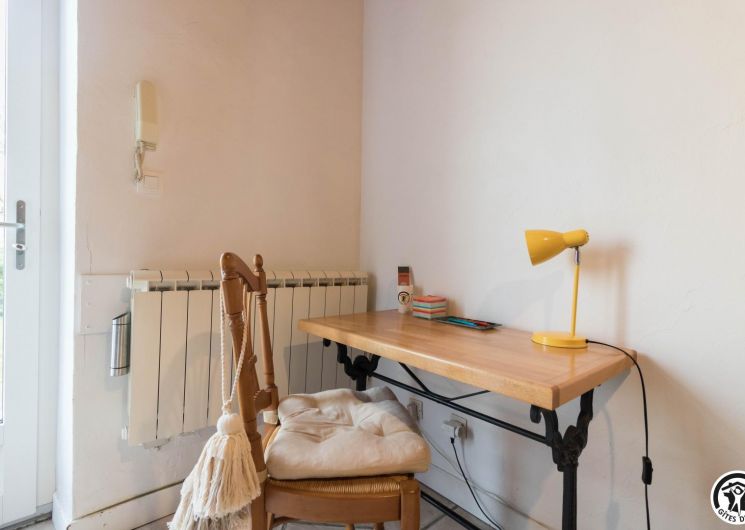 TELETRAVAIL : mise à disposition d’un bureau, d’une chaise confortable, d’une lampe (proximité d’une prise électrique pour le branchement d’un ordinateur portable, rallonge et multiprise sur demande). Connexion Internet haut-débit (wifi et câble RJ45). Couverture téléphonique 4G (opérateur : SFR).