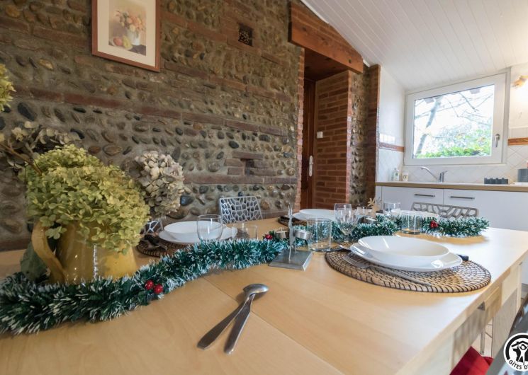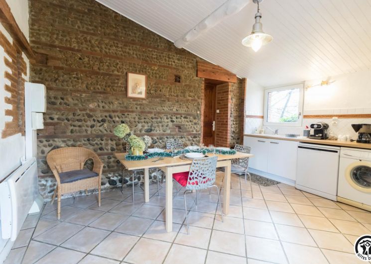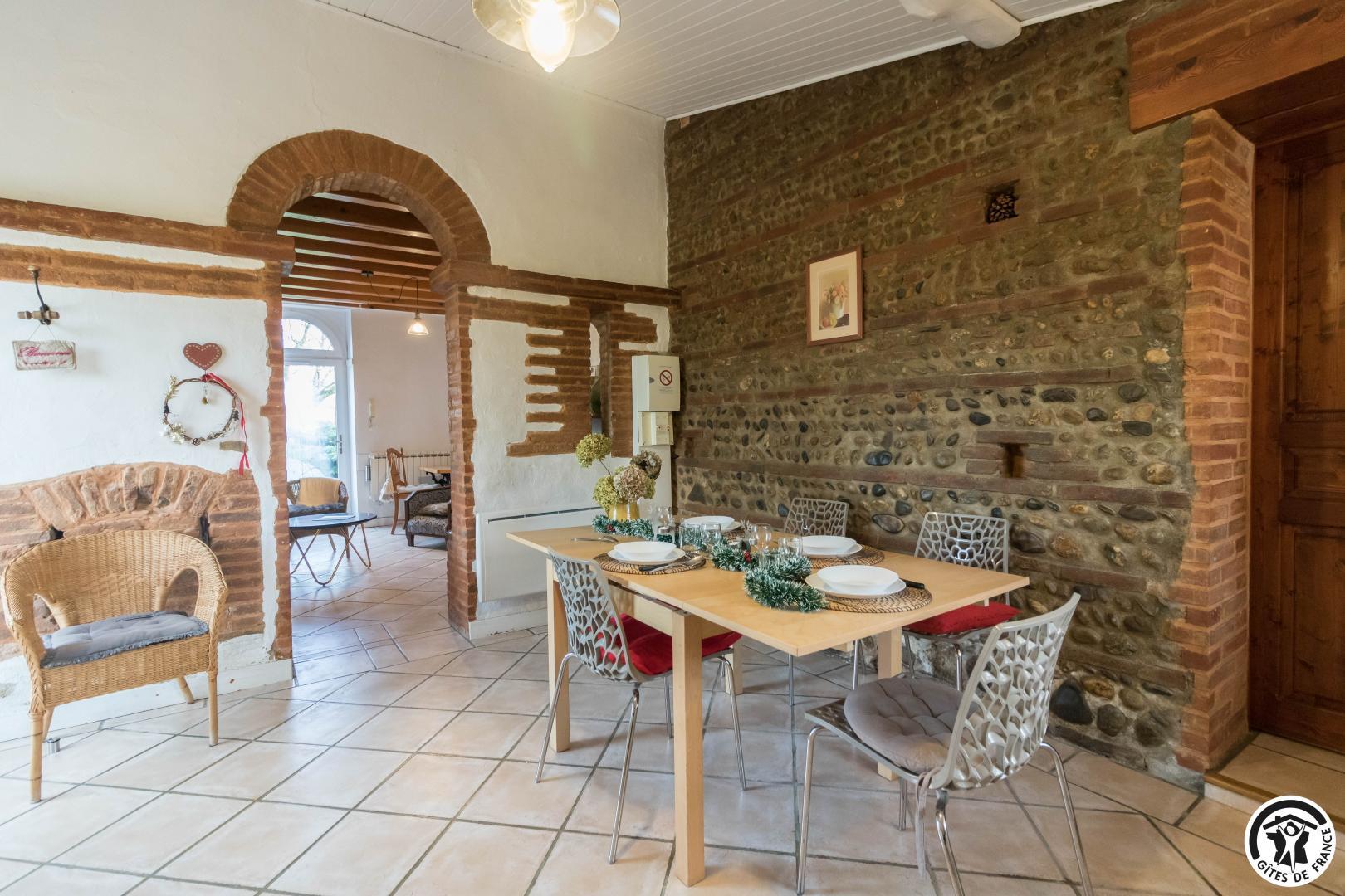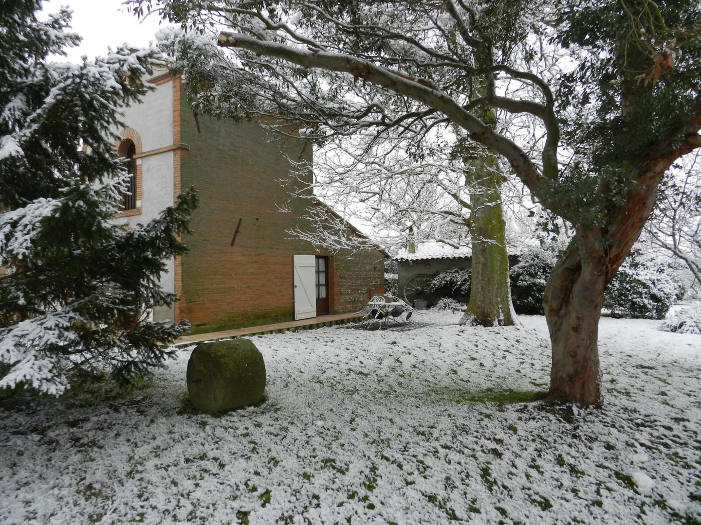 Dans l’ancien chai d’une ferme typiquement lauragaise à la métropole sud -est toulousain(Toulouse à 25km, à 2km du Canal du Midi), rénové en briques roses et galets de Garonne, très agréable, calme, un grand platane fait le bonheur de notre hébergement. Notre gîte est mitoyen à notre habitation. Notre fils a un paintball sur place (sur réservation) et aussi un escape game à 5km. Lac de la Thésauque 15kms et Etang de l’Orme Blanc à 20km (base nautique, baignade, plage…).