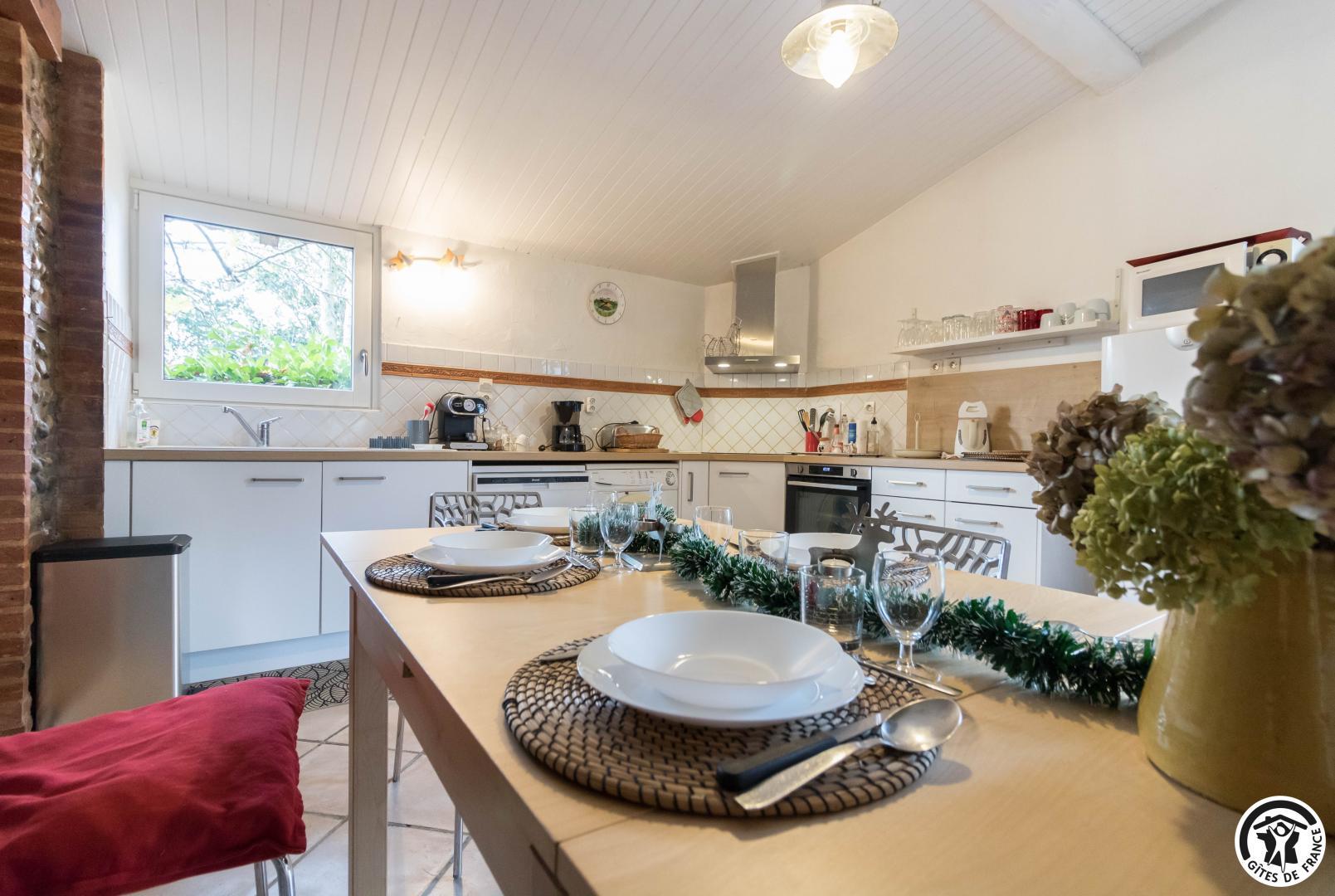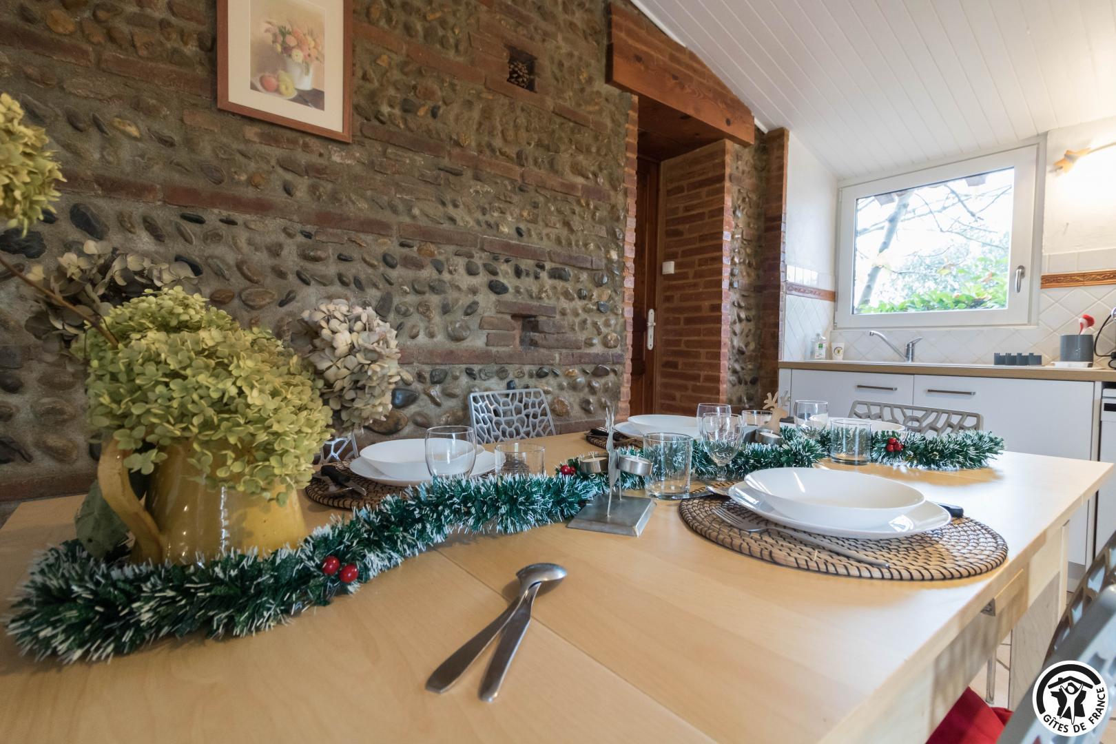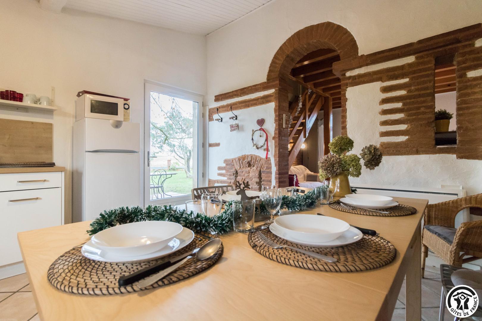 Dans l’ancien chai d’une ferme typiquement lauragaise à la métropole sud -est toulousain(Toulouse à 25km, à 2km du Canal du Midi), rénové en briques roses et galets de Garonne, très agréable, calme, un grand platane fait le bonheur de notre hébergement. Notre gîte est mitoyen à notre habitation. Notre fils a un paintball sur place (sur réservation) et aussi un escape game à 5km. Lac de la Thésauque 15kms et Etang de l’Orme Blanc à 20km (base nautique, baignade, plage…).