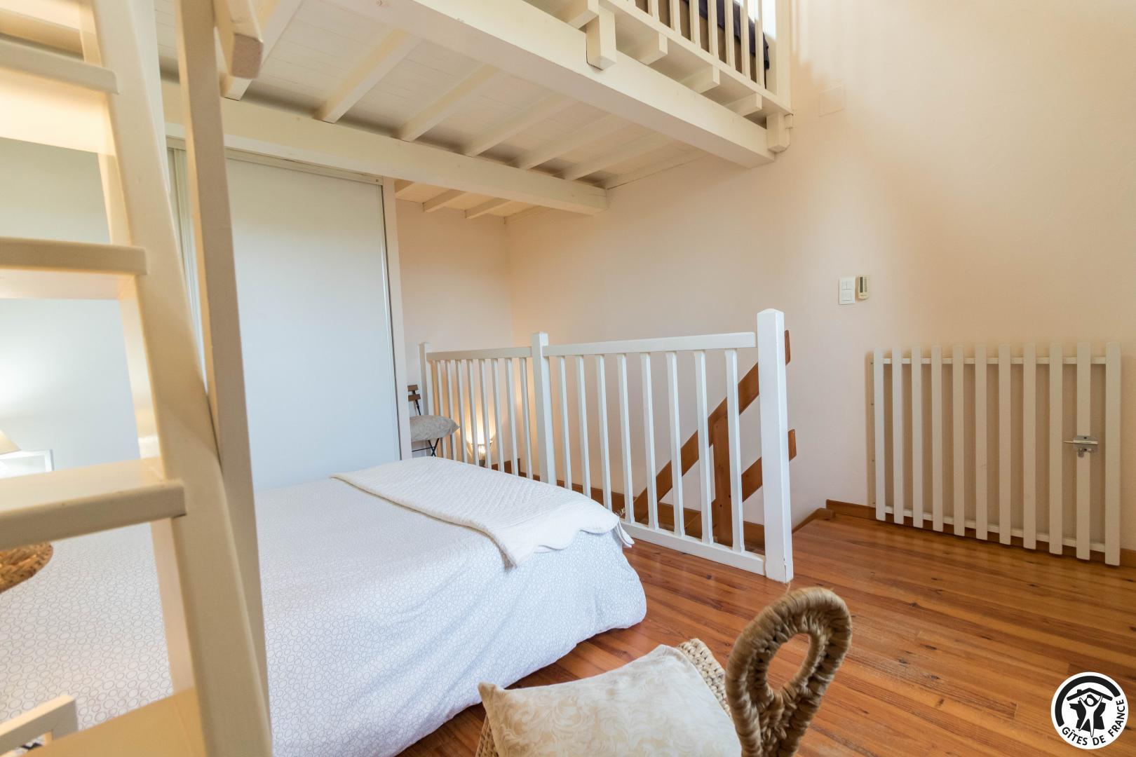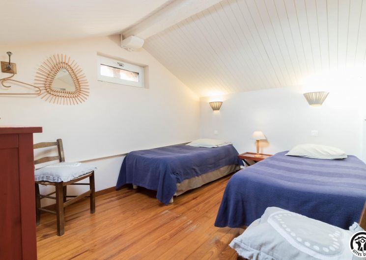 Rez-de-chaussée : cuisine intégrée (rénovée en mars 2022)/coin repas, salon, salle d’eau/WC. Premier étage : chambre (1 lit 2 personnes en 140cm). Mezzanine au deuxième étage sous comble à laquelle on accède par une échelle meunière (2 lits 1 personne en 90cm). Chauffage électrique, climatisation réversible dans les chambres. Extérieur : jardin, coin-repas sous un immense platane. Ping-pong. Parking réservé. Voie ferrée à 200m. Utilisation sèche-linge sur demande.