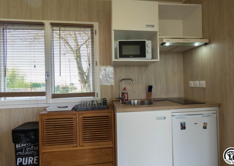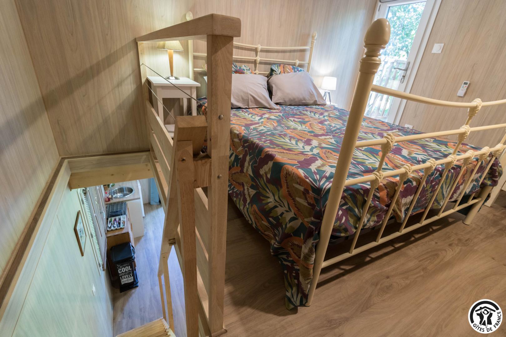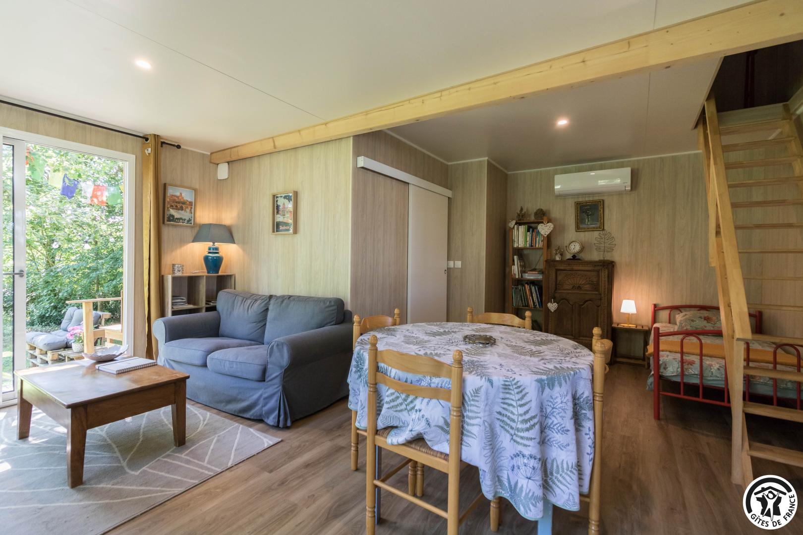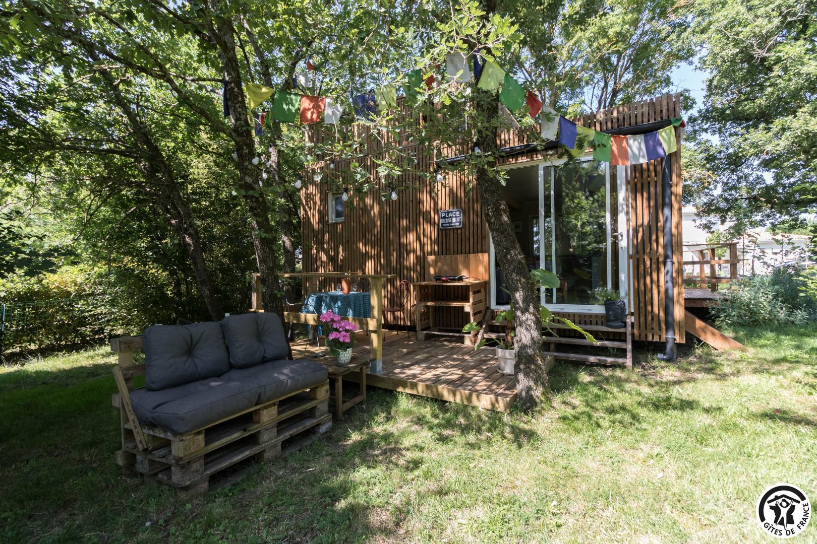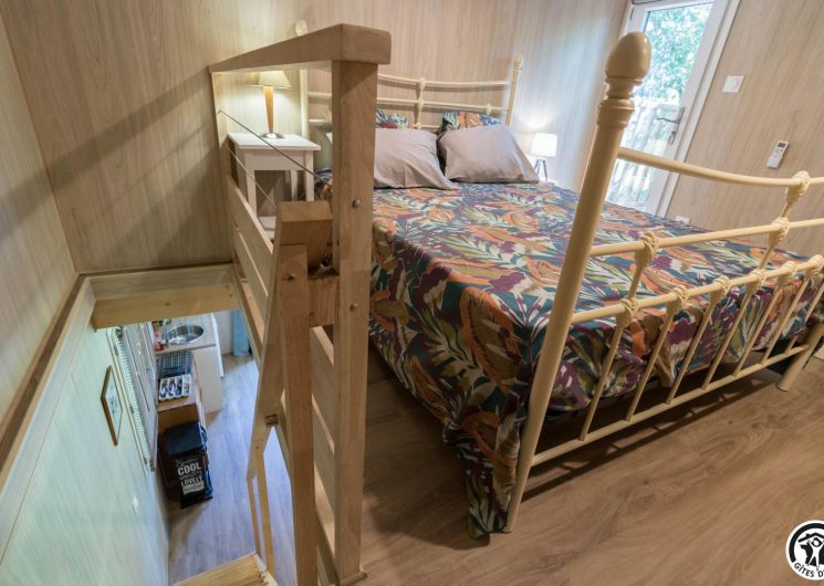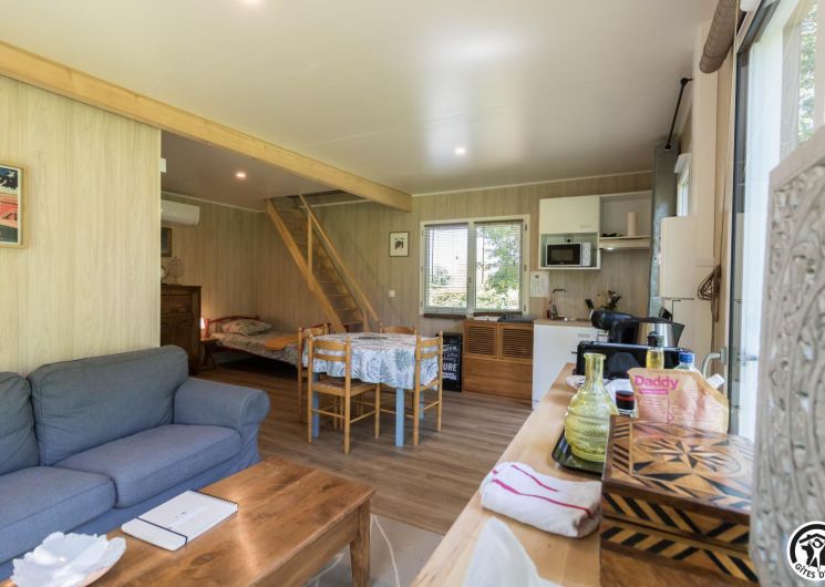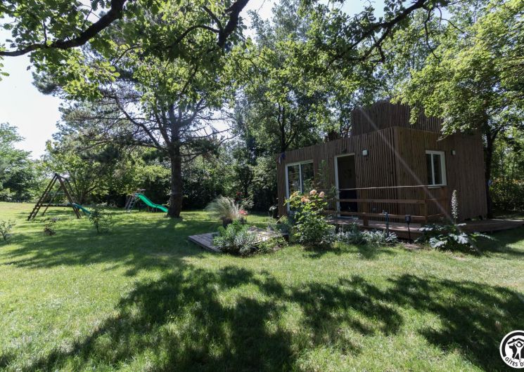 Construite en bois, les baies vitrées de cet hébergement atypique vous feront baigner dans la lumière. Le premier niveau est constitué d’un vaste séjour (cuisine intégrée, coin salon, espace repas et lit simple en 90*190cm) et d’une salle d’eau avec WC (accessibilité facilitée). Le lit double en 140*190cm est situé dans la mezzanine (escalier raide) et donne sur un petit balcon, parfait pour apprécier le paysage du Lauragais et la chaine des Pyrénées.