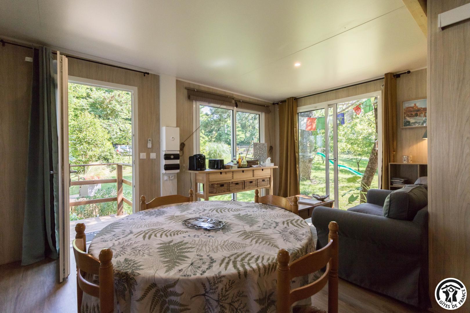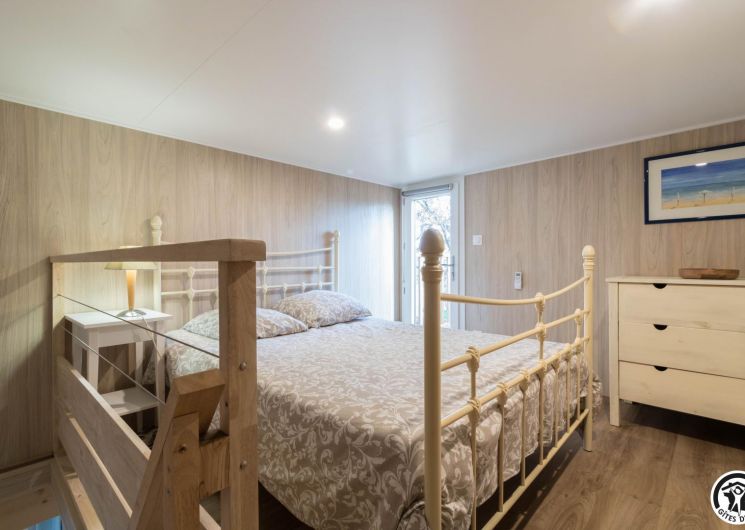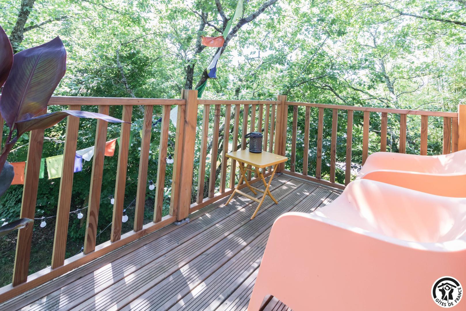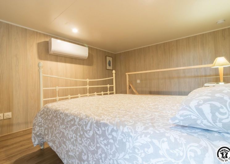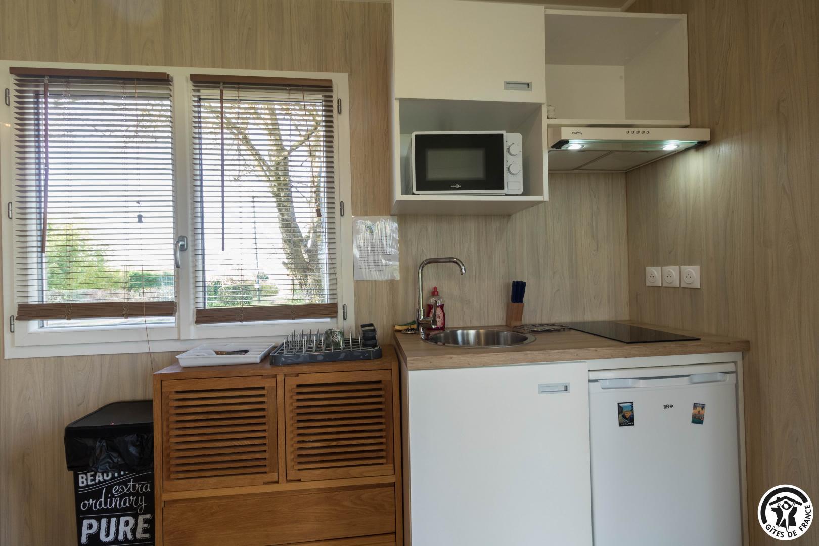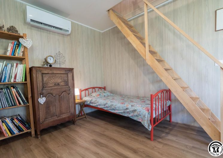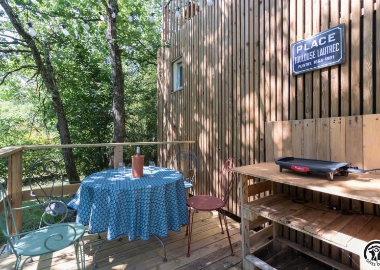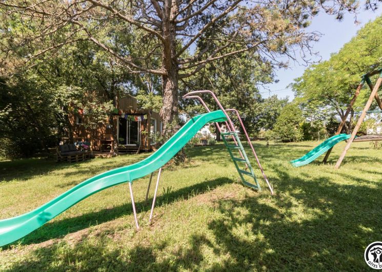 Construite en bois, les baies vitrées de cet hébergement atypique vous feront baigner dans la lumière. Le premier niveau est constitué d’un vaste séjour (cuisine intégrée, coin salon, espace repas et lit simple en 90*190cm) et d’une salle d’eau avec WC (accessibilité facilitée). Le lit double en 140*190cm est situé dans la mezzanine (escalier raide) et donne sur un petit balcon, parfait pour apprécier le paysage du Lauragais et la chaine des Pyrénées.
