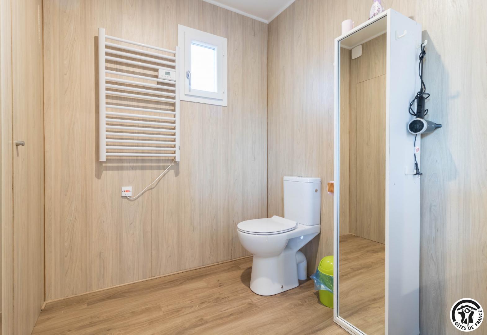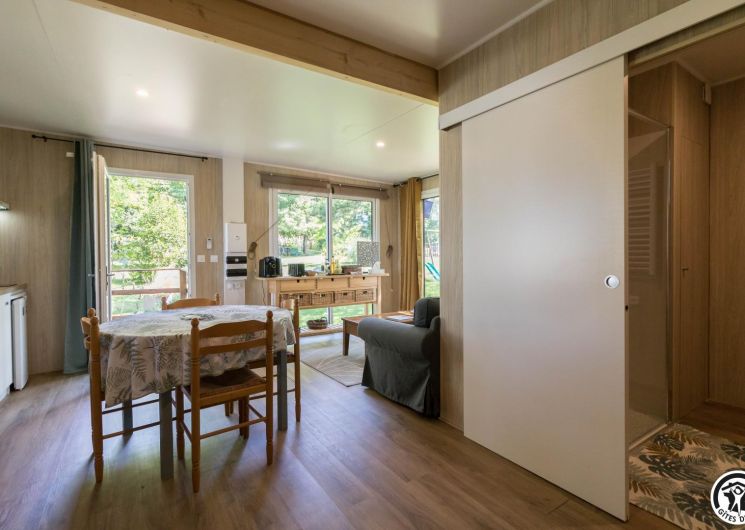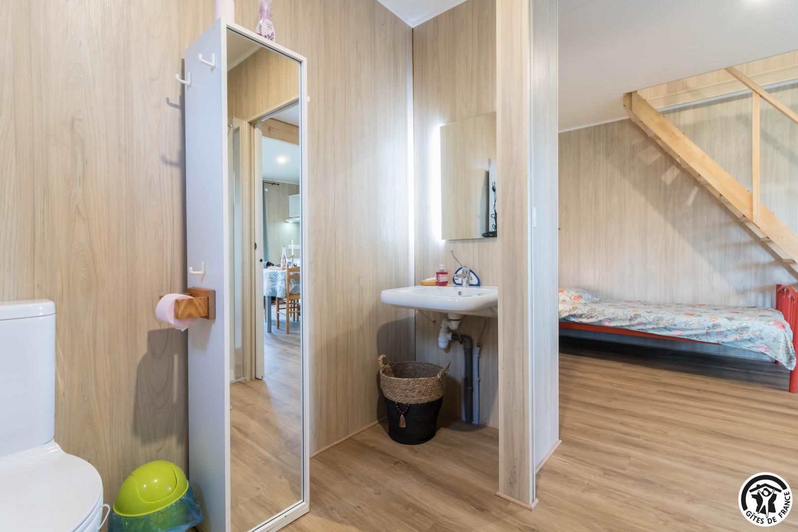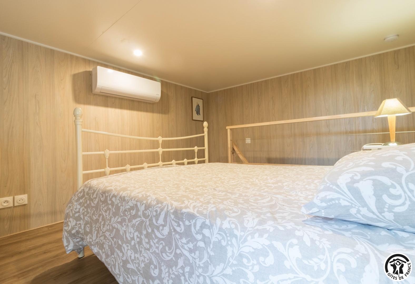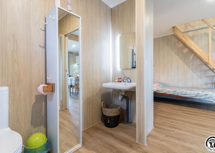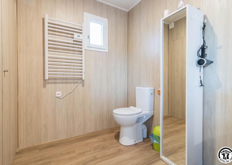 Construite en bois, les baies vitrées de cet hébergement atypique vous feront baigner dans la lumière. Le premier niveau est constitué d’un vaste séjour (cuisine intégrée, coin salon, espace repas et lit simple en 90*190cm) et d’une salle d’eau avec WC (accessibilité facilitée). Le lit double en 140*190cm est situé dans la mezzanine (escalier raide) et donne sur un petit balcon, parfait pour apprécier le paysage du Lauragais et la chaine des Pyrénées.