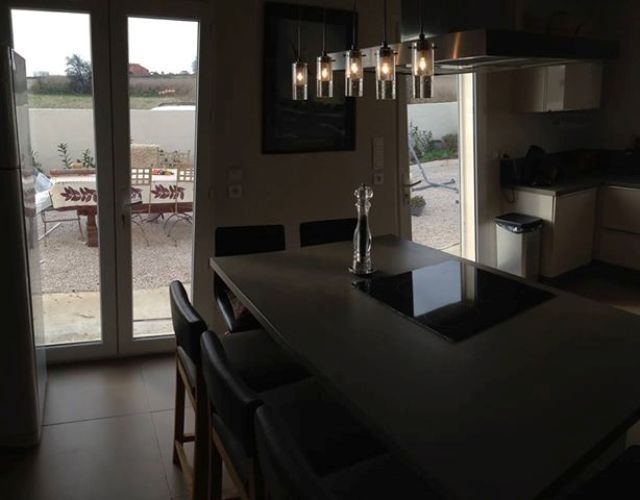 Proche de Valras-Plage, Sérignan, Sérignan-Plage et Villeneuve-lès-Béziers, entre mer et Canal du Midi, villa à étage pour 6 personnes, superficie 105 m2, avec piscine (8m x 4m), climatisation. Au rez-de-chaussée : cuisine à l’américaine, entièrement équipée, salon, une chambre avec 1 lit 140, une salle d’eau avec douche et wc. Au 1er étage : 2 chambres avec un lit 140, 2 lits 80 x 80), une salle de bains avec baignoire, wc indépendant.