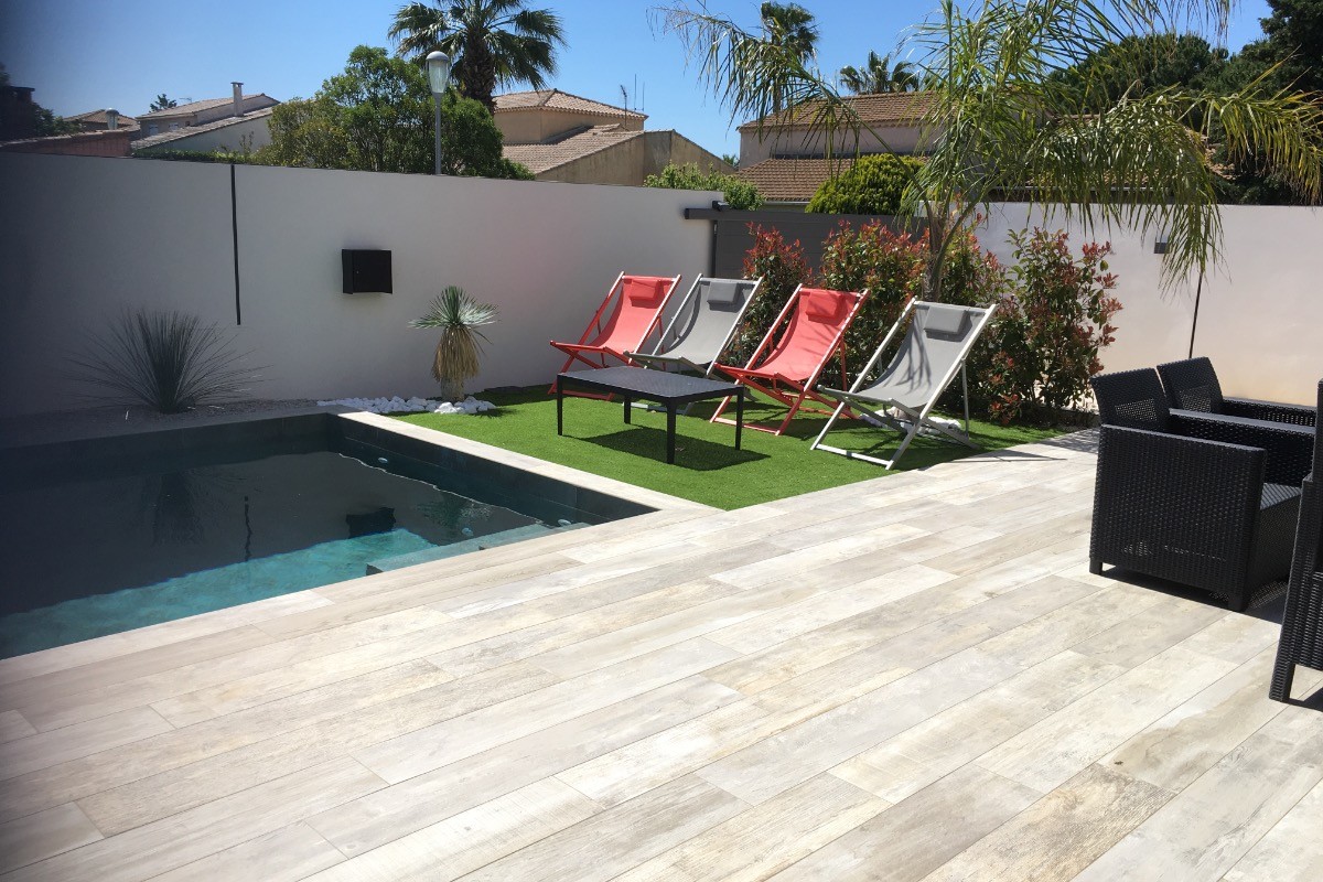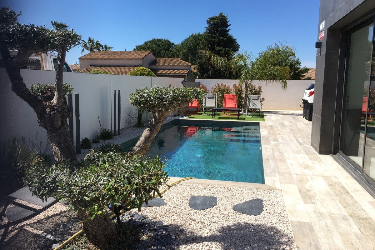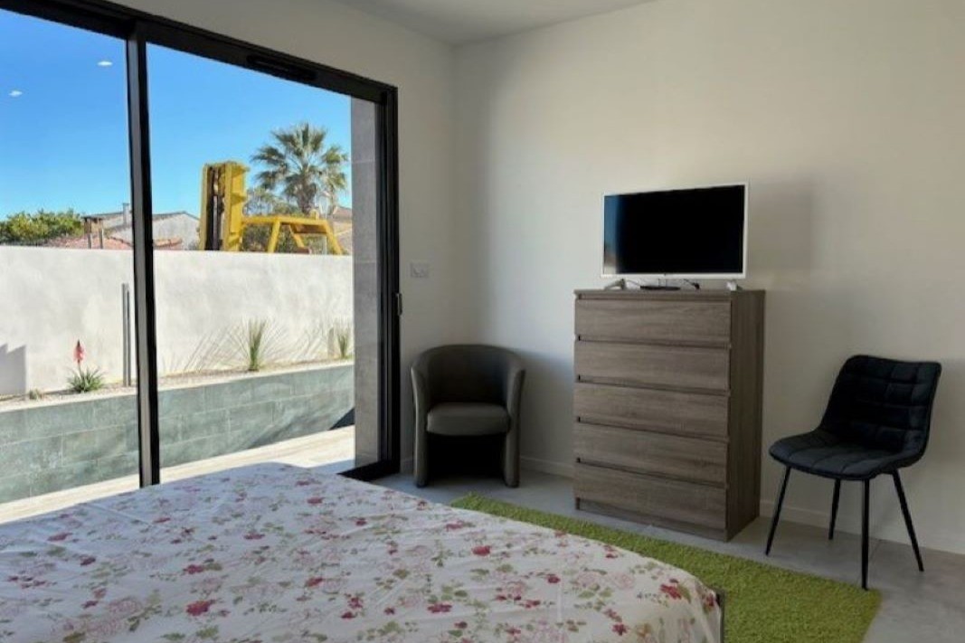 Bienvenue a Agde, ville située dans l’Hérault ou le soleil brille 302 jours pas an. Une Maison de vacances moderne vous attend, offrant tout le confort et des belles prestations. Cette nouvelle location de vacances, conçue avec goût pour votre plus grand plaisir. Découvrez cette villa en location courte durée exceptionnelle haut de gamme à Agde avec portail sécurisé, un jardin agrémenté d’une grande piscine et un grand garage. La cuisine spacieuse est entièrement équipée avec four, micro ondes, cafetière et plusieurs petit électroménager. Buanderie avec machine à laver et sèche linge Le salon de 32m2 est doté d’une grande télévision avec internet. Chaque chambre fait plus de 12m2. Toutes les chambres possèdent des grandes armoires et chacune une salle d’eau ou salle de bain.La première se situe au RDC, les 3 autres à l’étage. Tout est neuf, soyez les premiers à profiter de cette grande maison à Agde. Le linge de lit et le linge de toilette peuvent être fournis sur demande. La maison est idéalement située dans une impasse au calme, proche des commerces et de la plage Les arrivées et les départs se font le dimanche à partir de cette année , n’hésitez pas à me contacter pour plus d’informations. Nous avons deux maisons à louer, l’une proche de l’autre.