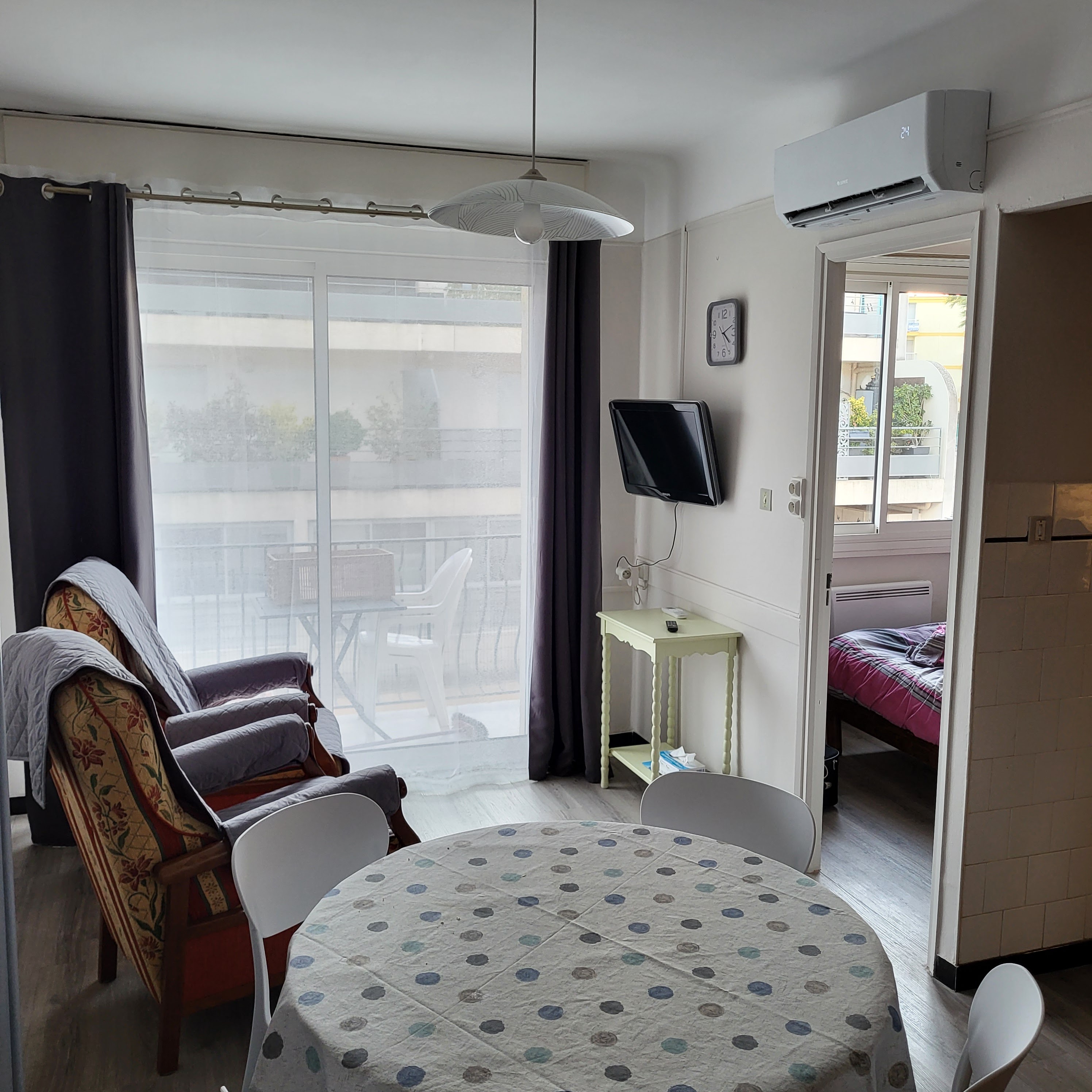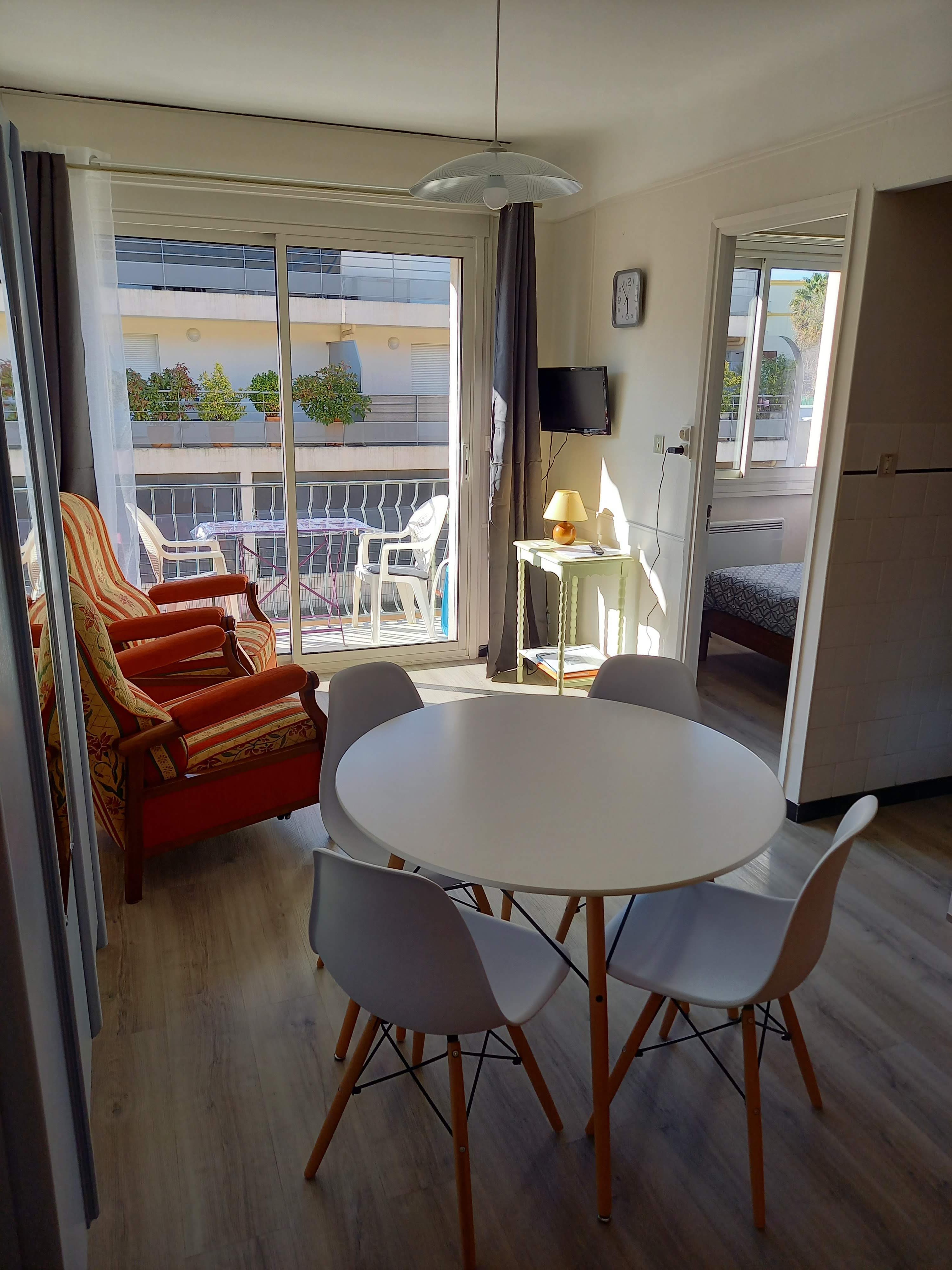 Appartement type 2 de 28 m² avec petit balcon dans petite résidence avec parking commun sécurisé, situé au coeur de balaruc proche de toutes commodités (400m de la cure) Appartement tout confort, entièrement équipé et fonctionnel. Un lave-linge et climatisation mobile. Pas de WiFi.