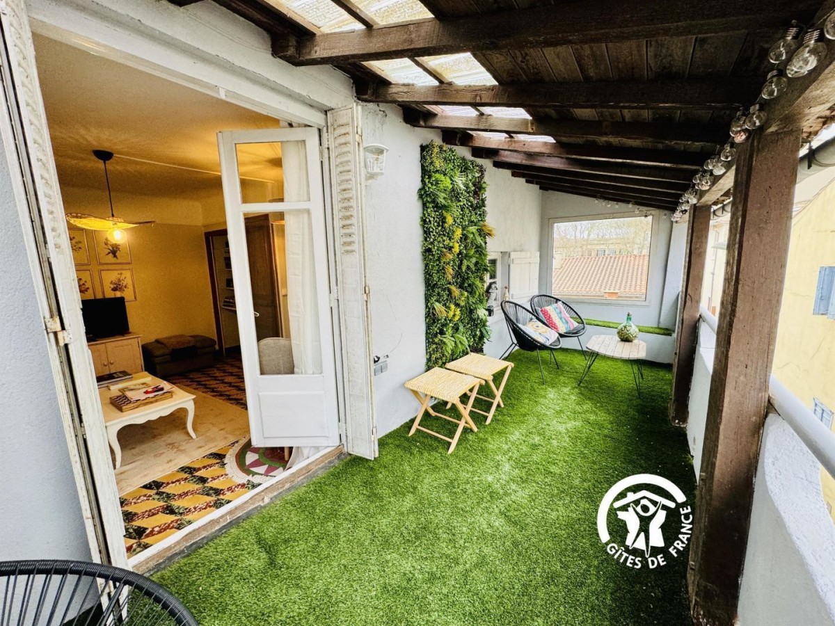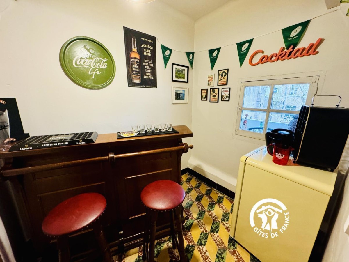 Cette belle maison de ville offre un cadre agréable et une situation à proximité immédiate de tous les attraits de la ville Médiévale à moins de 5 minutes à pieds: commerces en tout genre, restaurants, lieux de culture (cinéma, théâtre, musée), des ruelles historiques de la Bastide Saint-Louis avec ses animations culturelles incontournables comme le festival de musique de la Cité ou encore les fêtes locales, le complexe aquatique du Pôle Aqualudique pour vous rafraîchir ou encore le Canal du Midi classé au patrimoine mondial de l’UNESCO. La Cité Médiévale est à 10-15 minutes environ à pieds où vous pourrez sur le chemin apprécier la ville de Carcassonne dans son ensemble. Les berges de l’Aude situées à quelques pas est un lieu idéal pour se balader à pieds ou à vélo et être en contact avec la nature le temps d’une promenade. Sur place, vous disposerez d’une belle terrasse entièrement privative en hauteur avec mobilier de jardin pour profiter de moments de détente ou de convivialité. Un garage privatif attenant est à votre disposition pour garer votre véhicule ou pour ranger des vélos. Le gîte situé en centre-ville est toutefois dans une ruelle très calme et peu passante (voitures ou piétons) idéal pour se reposer. Au rez-de-chaussée: – Chambre 1 avec un lit 140x190cm et un canapé avec rangements. – Une salle de bain indépendante avec baignoire, lavabo et WC. – C’est au rez-de-chaussée que le garage est accessible depuis une porte, il dispose d’un lave-linge et sèche-linge. Au 1er étage: – Une salle à manger avec une cuisine indépendante toute équipée (micro-ondes, four, lave-vaisselle, cafetière expresso, frigo-congélateur). – Chambre 2: lit 140x190cm. – Chambre 3: lit 140x190cm, elle communique directement avec la chambre 4 équipée d’un lit 90x190cm. Au 2ème étage: – Un salon avec canapé, fauteuils et TV connectée qui mène à une petite pièce insolite: un bar irlandais. Depuis le salon vous accèderez à la terrasse.