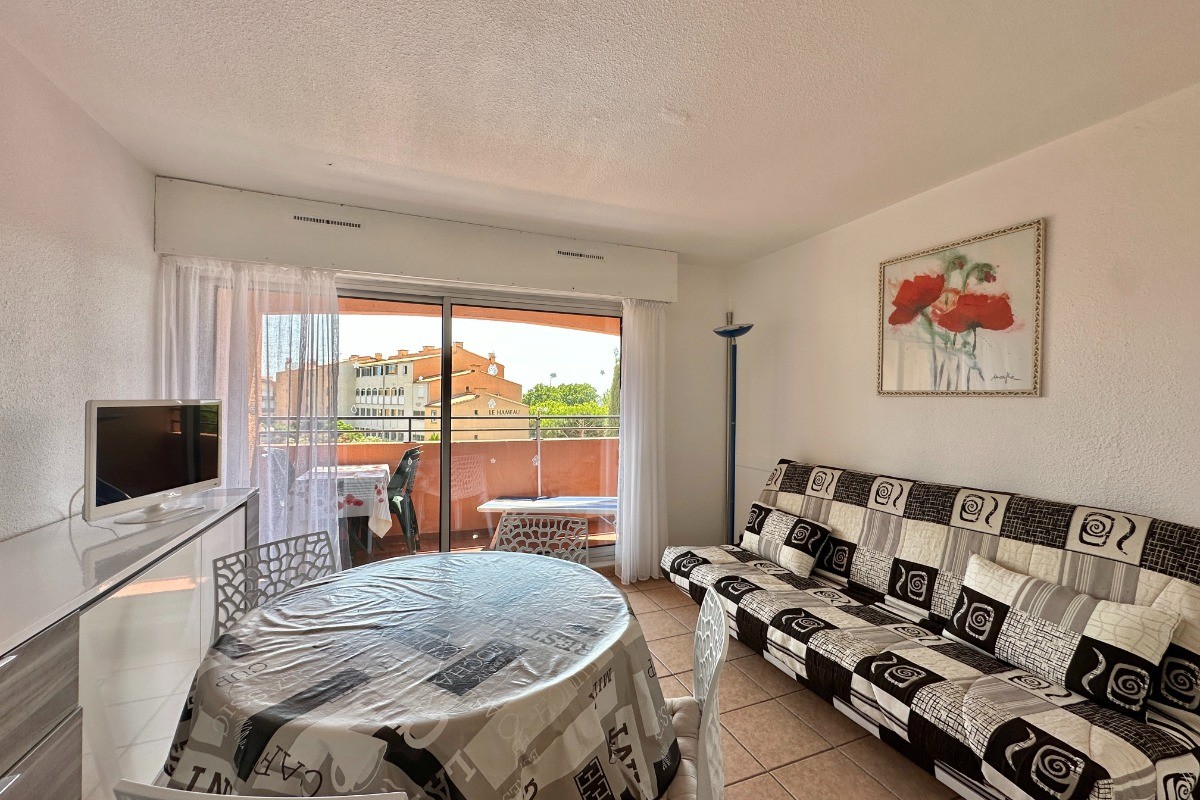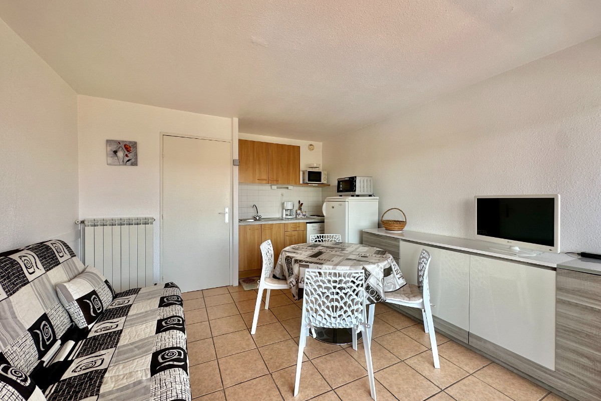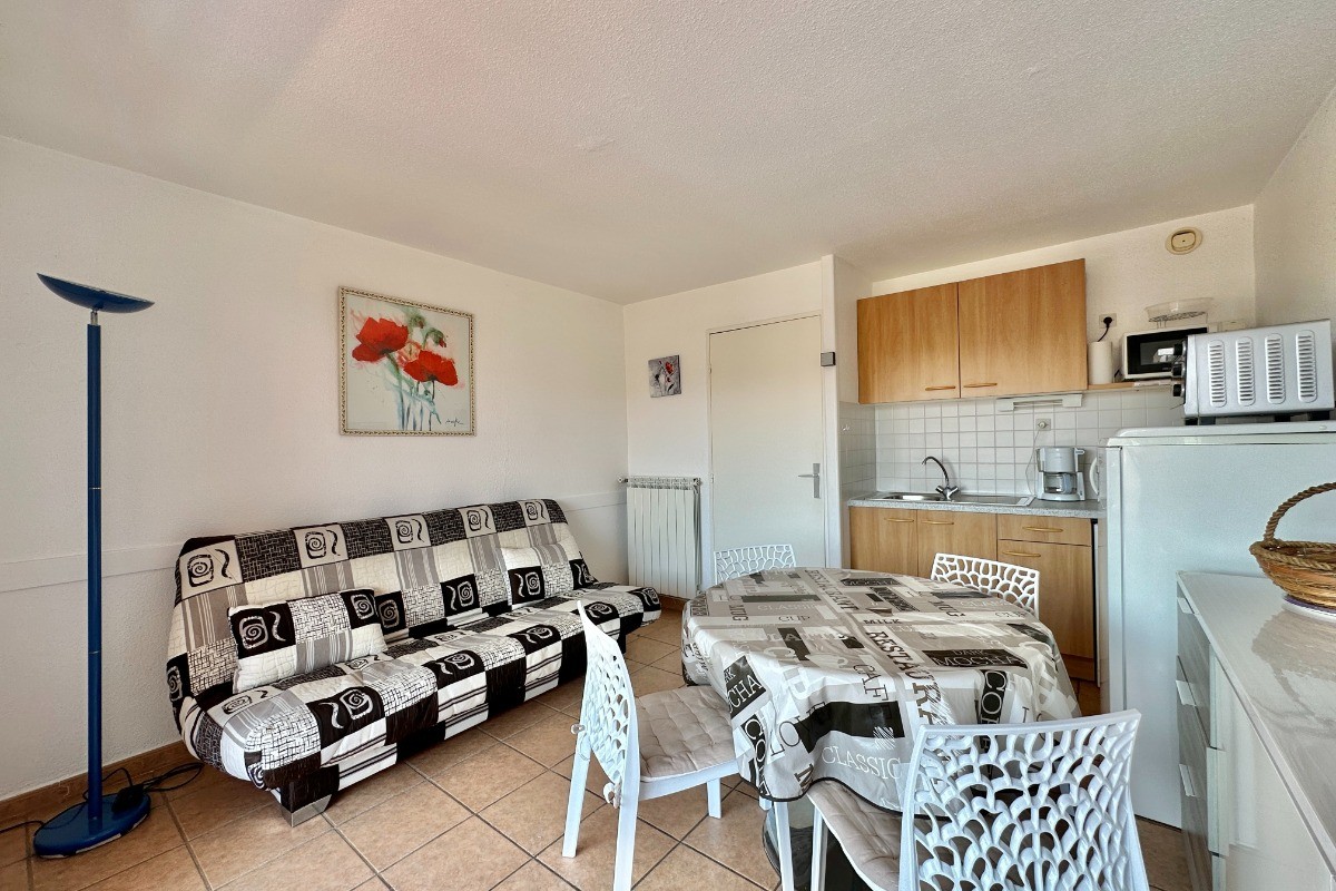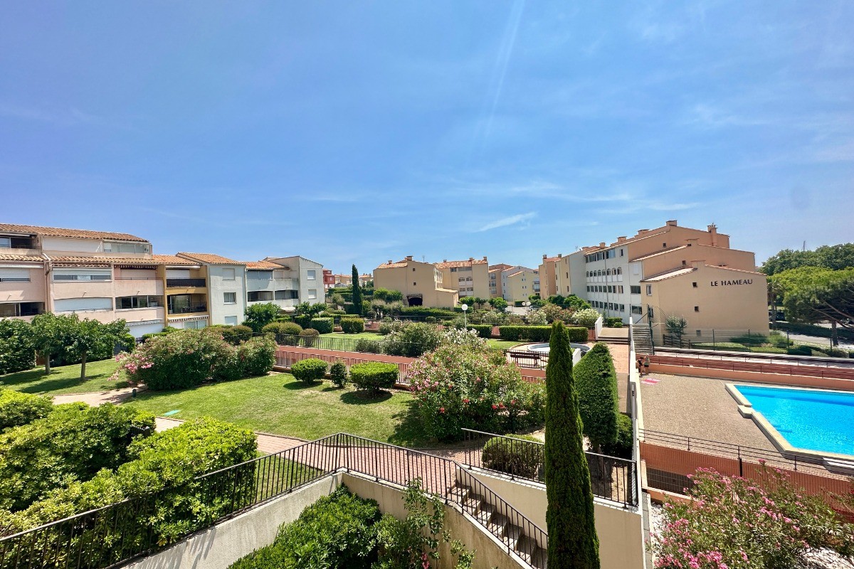 Location saisonnière : Studio cabine au Cap d’Agde, 25 m² avec loggia, à 300 m de la plage et piscine Réservez dès maintenant ce studio cabine de 25 m² avec loggia, idéalement situé au Cap d’Agde, dans une résidence avec piscine, à seulement 300 mètres de la plage. Ce studio en location saisonnière est parfait pour des vacances en famille ou entre amis, avec un hébergement confortable pour 4 personnes. Caractéristiques de l’appartement : * Couchages : un canapé-lit en 140 cm dans le séjour et des lits superposés dans la cabine, idéal pour accueillir 4 personnes. * Salle de bains avec baignoire et WC séparés pour plus de confort. * Loggia pour profiter des beaux jours et de l’air marin. Équipements : * Télévision * Micro-ondes, four, lave-linge * Parking privé n°254, à proximité de l’appartement Situé dans une résidence calme et sécurisée, ce studio est à proximité des commerces et des attractions du Cap d’Agde, parfait pour des vacances reposantes ou dynamiques. Idéalement situé pour des activités comme la baignade, les sports nautiques ou la découverte des environs. Référence agence : 93