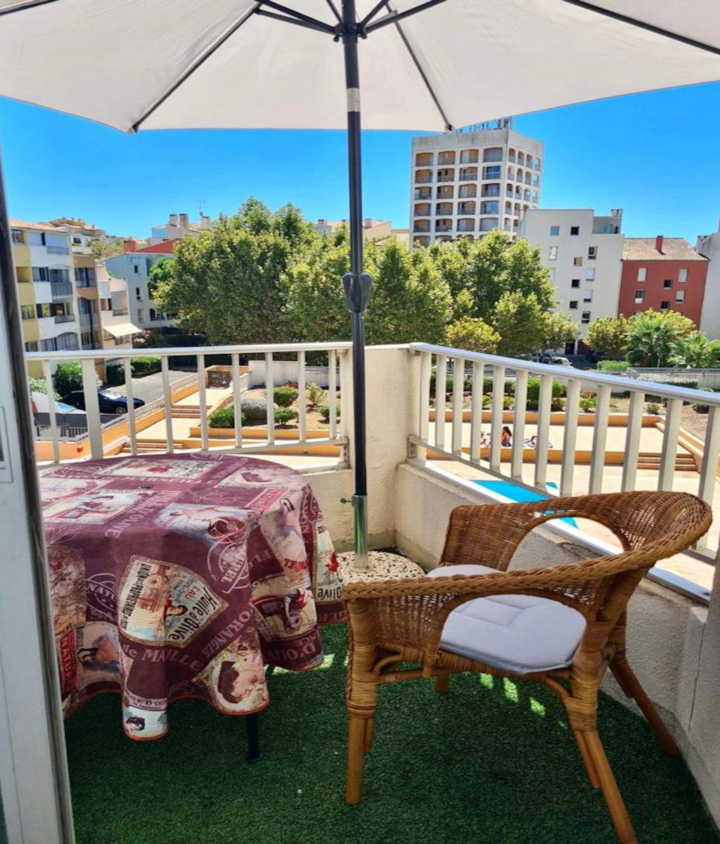 RÉF : PORTD58 Très beau Studio Cabine avec très belle vue sur la piscine et le port depuis la terrasse. Résidence sécurisée avec piscine. Accès direct au Port. 3è étage avec ascenseur. Parking public à proximité. Composé de : entrée coin cabine, salle de bains, wc séparés, coin cuisine équipée, séjour avec coin repas, terrasse avec table et chaises de jardin. Confort : 1 canapé convertible en 140, 2 lits superposés en 90 Aménagé pour 4 personnes : 2 adultes maximum + enfants.