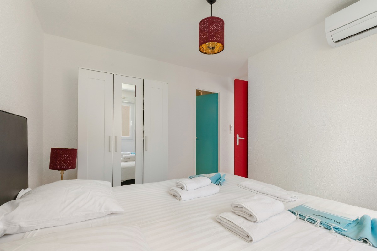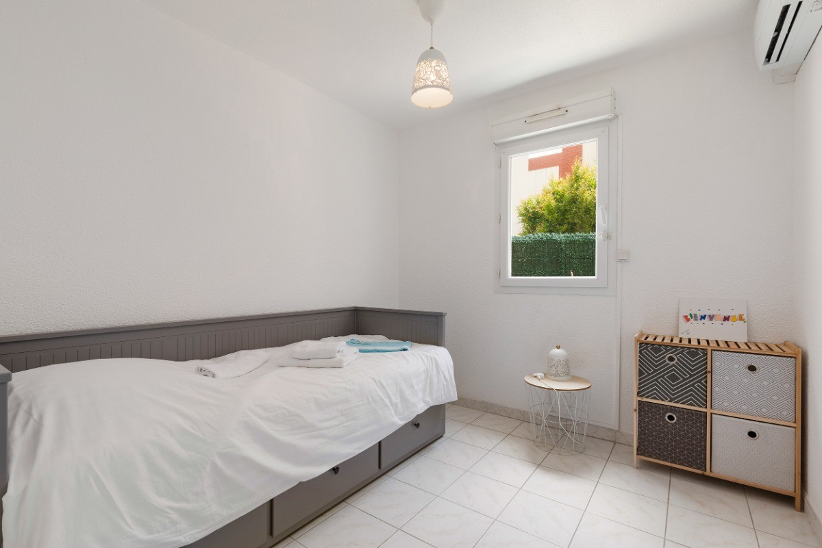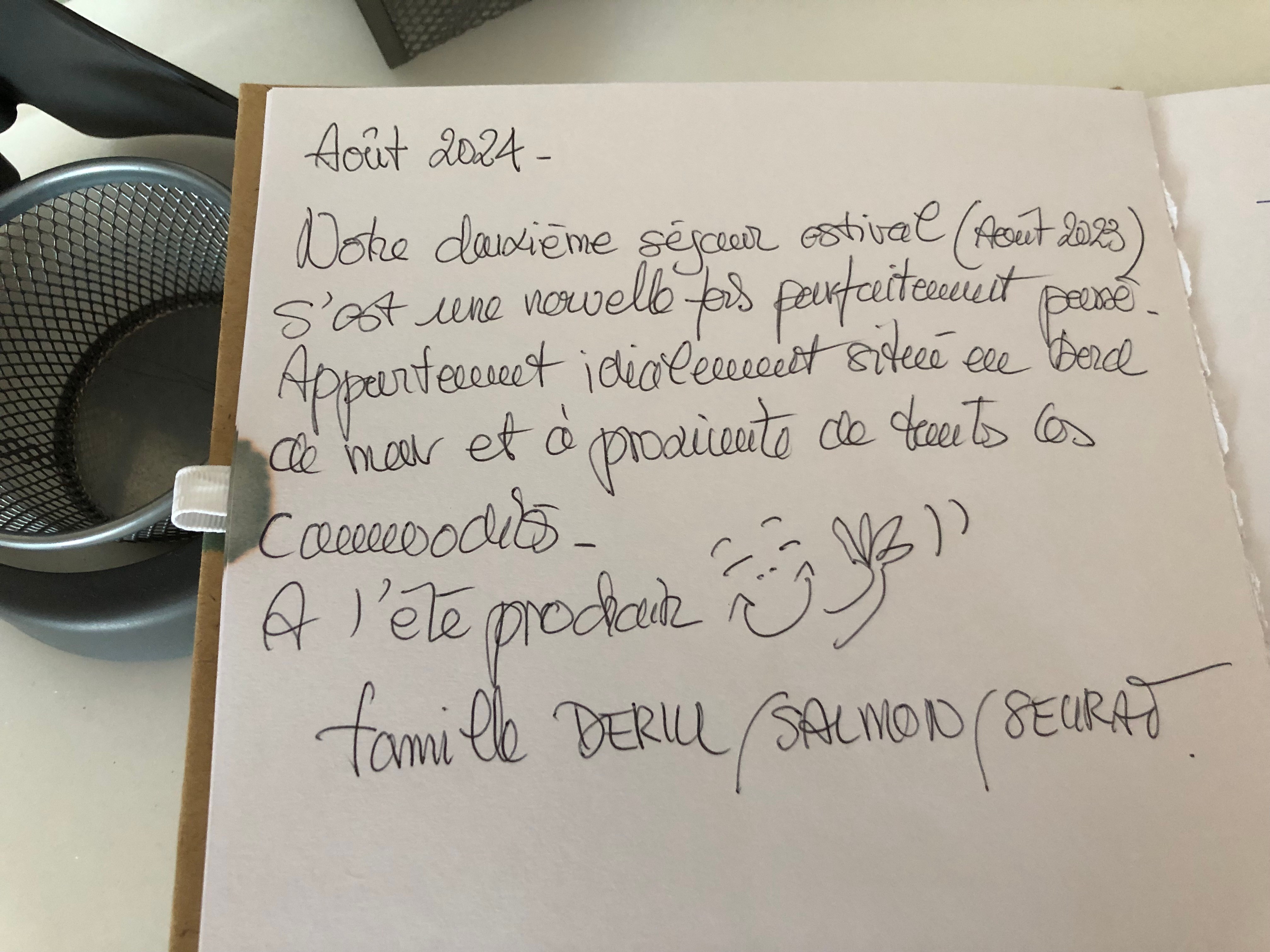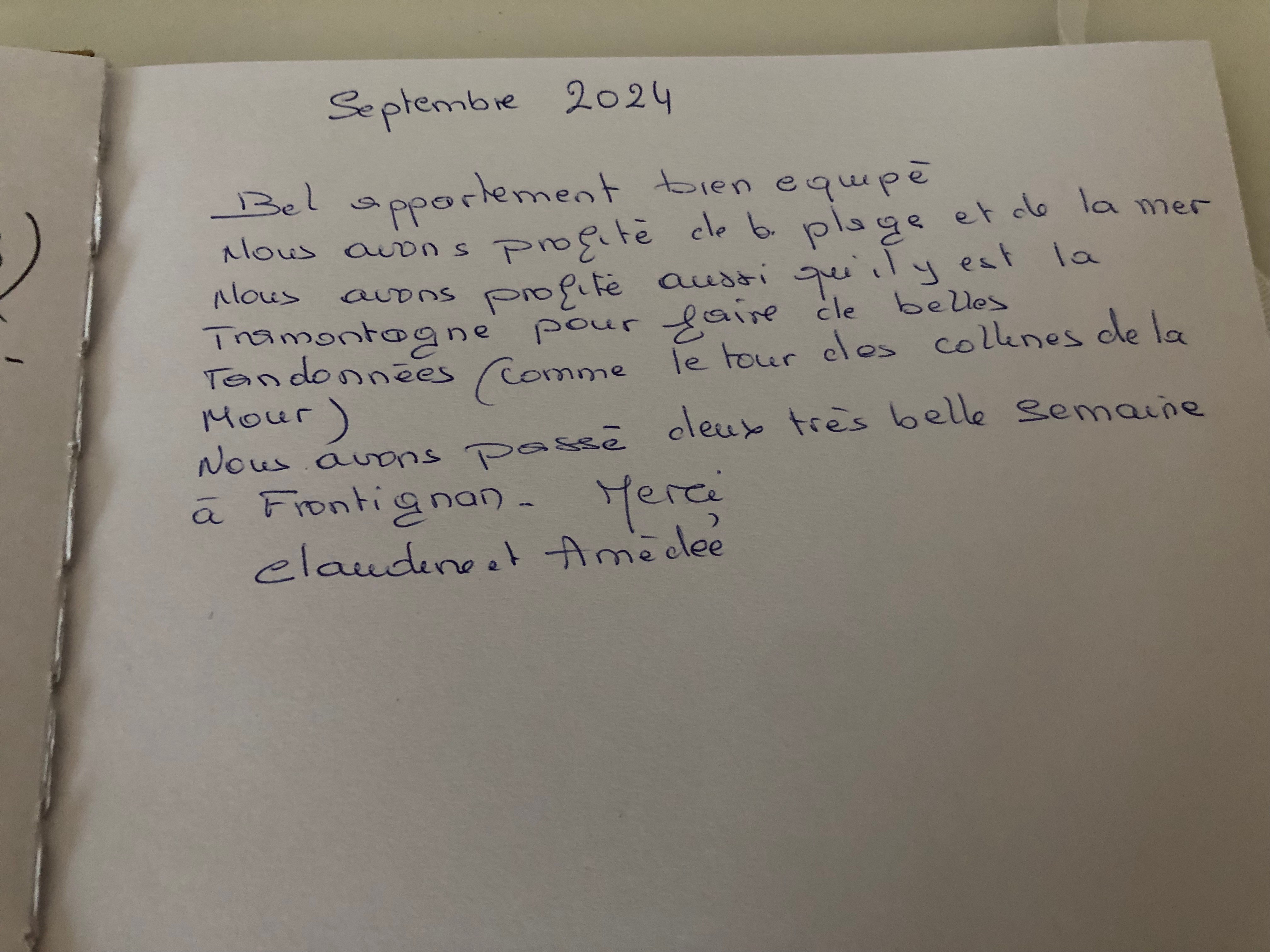 REVE DE MER Bienvenue dans votre location saisonnière . Appartement 6 personnes en duplex , à 2 pas de la plage . LOGEMENT situé à Frontignan Plage ( département de l’Hérault , région Occitanie ) Classé 3*** A 50 mètres de la plage , à 200 mètres des étangs . Diverses activités nautiques sont possibles : 23 Kms de plage Pavillon Bleu , 9 zones Natura 2000 , 200 Kms de pistes cyclables .Vous pourrez aussi profiter de la piscine de la résidence du 1/06 au 30/09 . BEL APPARTEMENT CLIMATISE , TOUT EQUIPE . A l’étage : cuisine , salon/salle à manger donnant sur une terrasse , 1 chambre , 1 salle de douche/toilette . Au rez de chaussée : 2 chambres dont une donnant sur une terrasse , 1 salle de douche/toilette . LA CUISINE est totalement équipée : vaisselles , ustensiles , électroménagers ( micro onde , four , lave vaisselle , lave linge , cafetière , expresso) ainsi que des appareils de cuisine conviviaux ( barbecue , fondue , raclette , crêpier ) LE SALON/SALLE A MANGER : un grand canapé , télévision , wifi , imprimante , bureau , livres ( à lire sur place !!! ) , table pour 6 personnes . Salon de jardin sur la terrasse . LES CHAMBRES : 2 d’entre elles sont équipées de 2 lits simples (80×200) et (90×200) pouvant être transformés en 1 lit double . La 3ème chambre , idéale pour les enfants est équipée d’un lit gigogne (160/200 déplié) . Votre enfant en bas âge sera confortablement installé : lit parapluie , chaise haute , poussette canne , transat , siège de douche , rehausseur toilette . Pour les plus grands jeux de sociétés et livres sont à leur disposition . LA RESIDENCE est sécurisée et gardien sur place . Vous disposerez de 2 places de parking privatives . Un service de conciergerie (THAU CONCIERGERIE) prend soin de l’appartement ( ménage ) et fournit draps , linge de cuisine , serviettes de toilette . Quelques jours avant votre séjour un responsable vous contactera afin de connaître votre heure d’arrivée de façon à vous remettre les clés et vous présenter les lieux . Il sera joignable pendant toute la durée de vos vacances . Vous avez envie d’un PETIT DEJEUNER comme à l’hôtel , c’est possible sur commande moyennant un supplément . En moyenne et haute saisons ( 1/04 au 30/09 ) plusieurs COMMERCES de proximité sont à votre disposition : supérette , petits commerces , magasins de plage , snacks , restaurants vous accueilleront chaleureusement ! FRONTIGNAN se situe à proximité de Sète et Balaruc les Bains (ville thermale) . Vous aurez la possibilité de vous y rendre grâce au réseau ferroviaire . Les bus de ville vous conduiront à la gare de Frontignan . Réduction à partir de : 7 nuits – 10%de réduction 14 nuits – 20% de réduction 21 nuits – 30% de réduction Taxe de Séjour : 1,73 Euros / personne / nuit Aucun frais de ménage . Pour toutes questions ou réservations , contactez moi par téléphone /e-mail . A très bientôt !!!